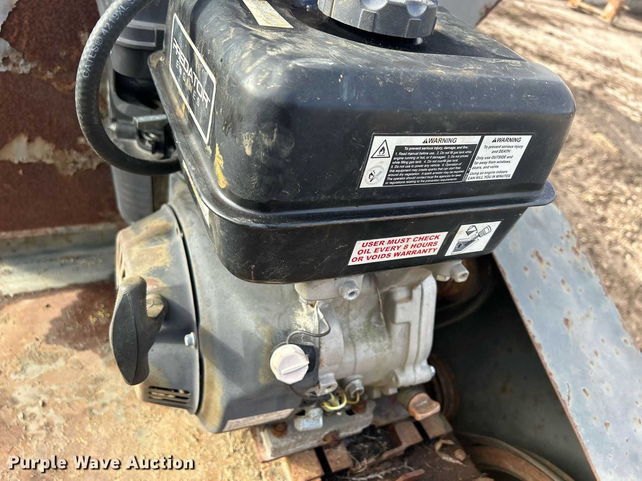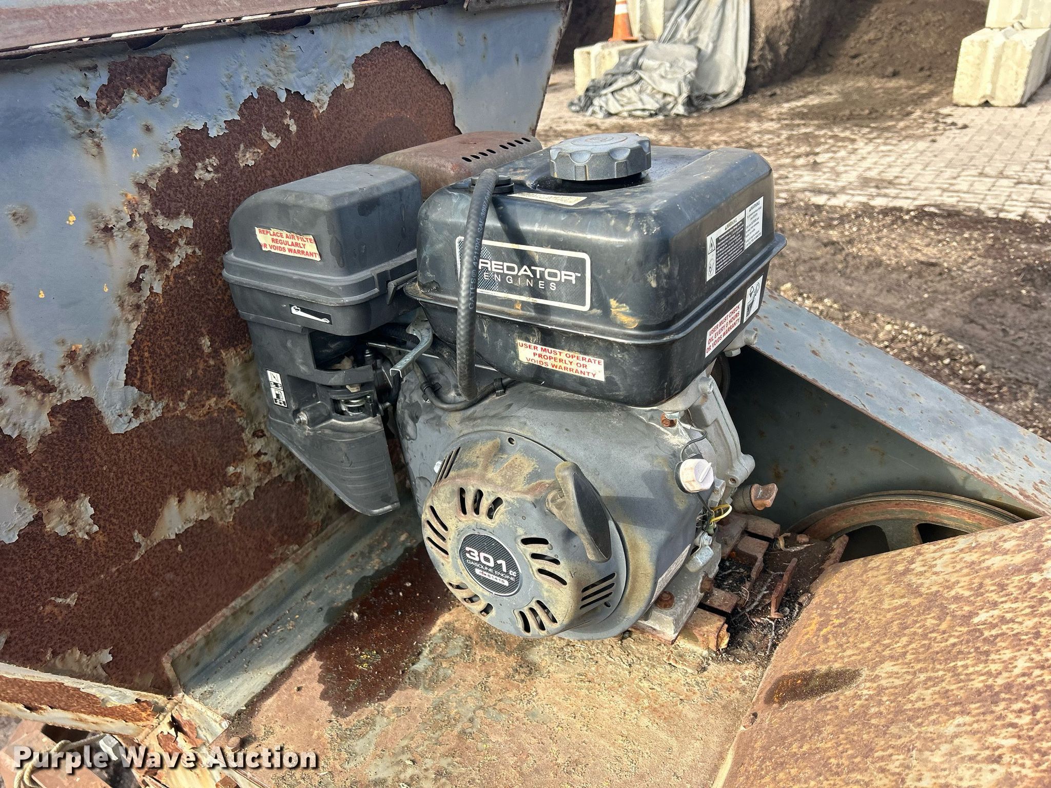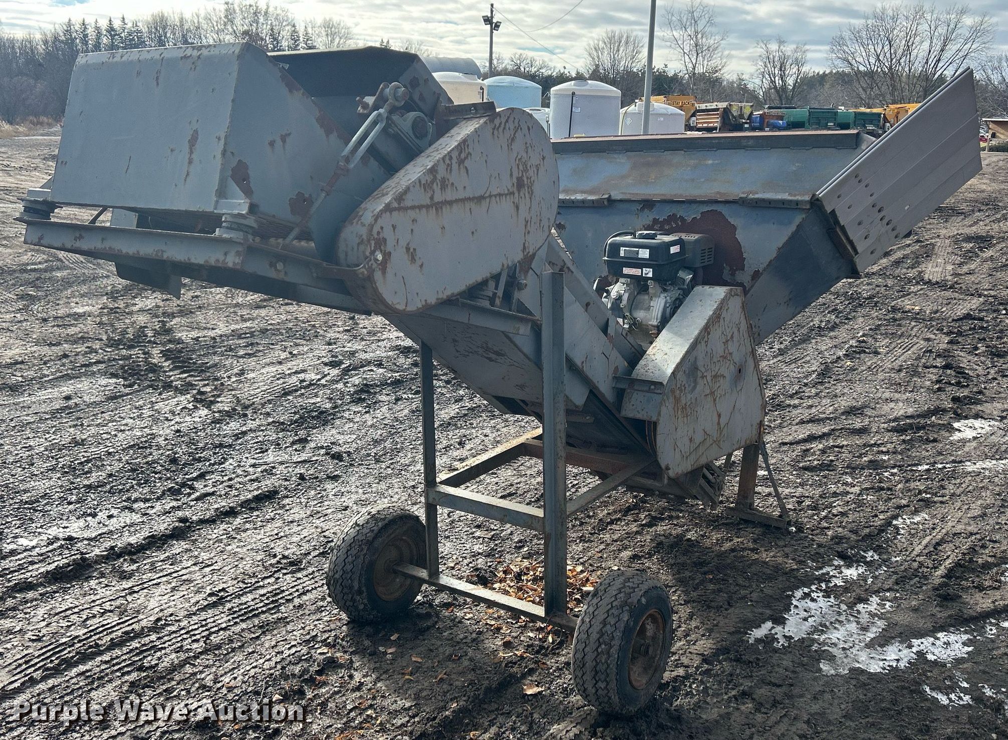 Lindig MK12 soil pulverizer. Serial: 20523. Engine Predator 61415, Displacement: 301 cc, Cylinders: 1, Fuel type: Gas. Features Input hopper Length: 28", Width: 60", Discharge: 8' L x 16" W. Chassis Hitch: Pintle, Axle: Single. Tires Size: 16.5x6.5-8. 4510 Dean Street. Woodstock, IL 60098