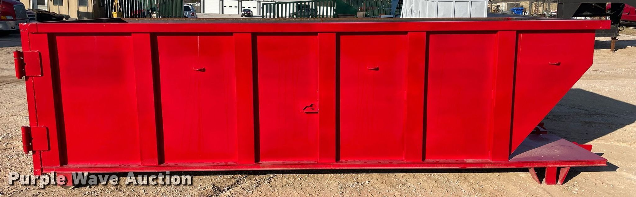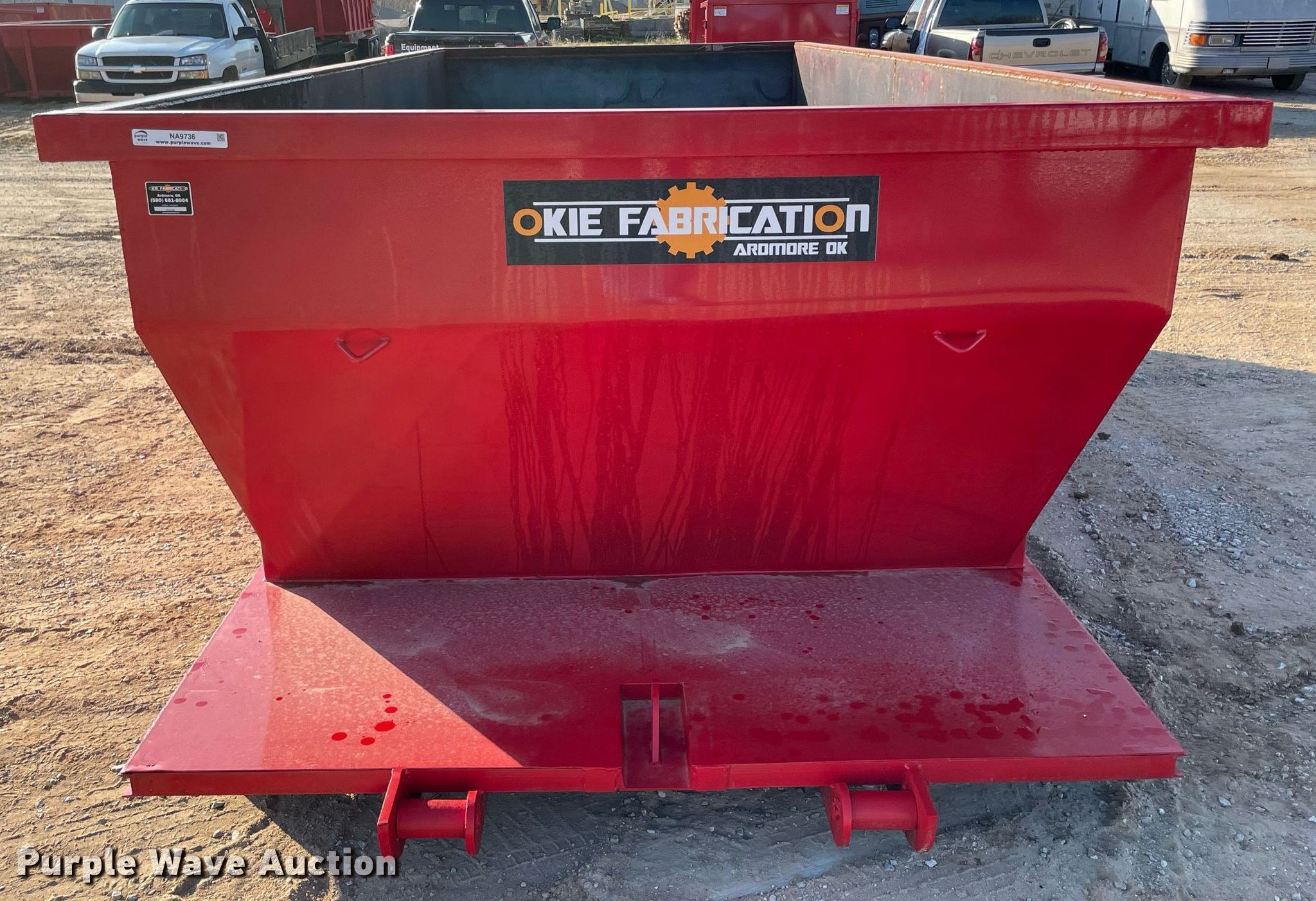 This Okie Fabrication roll-off container will sell to the highest bidder regardless of price.