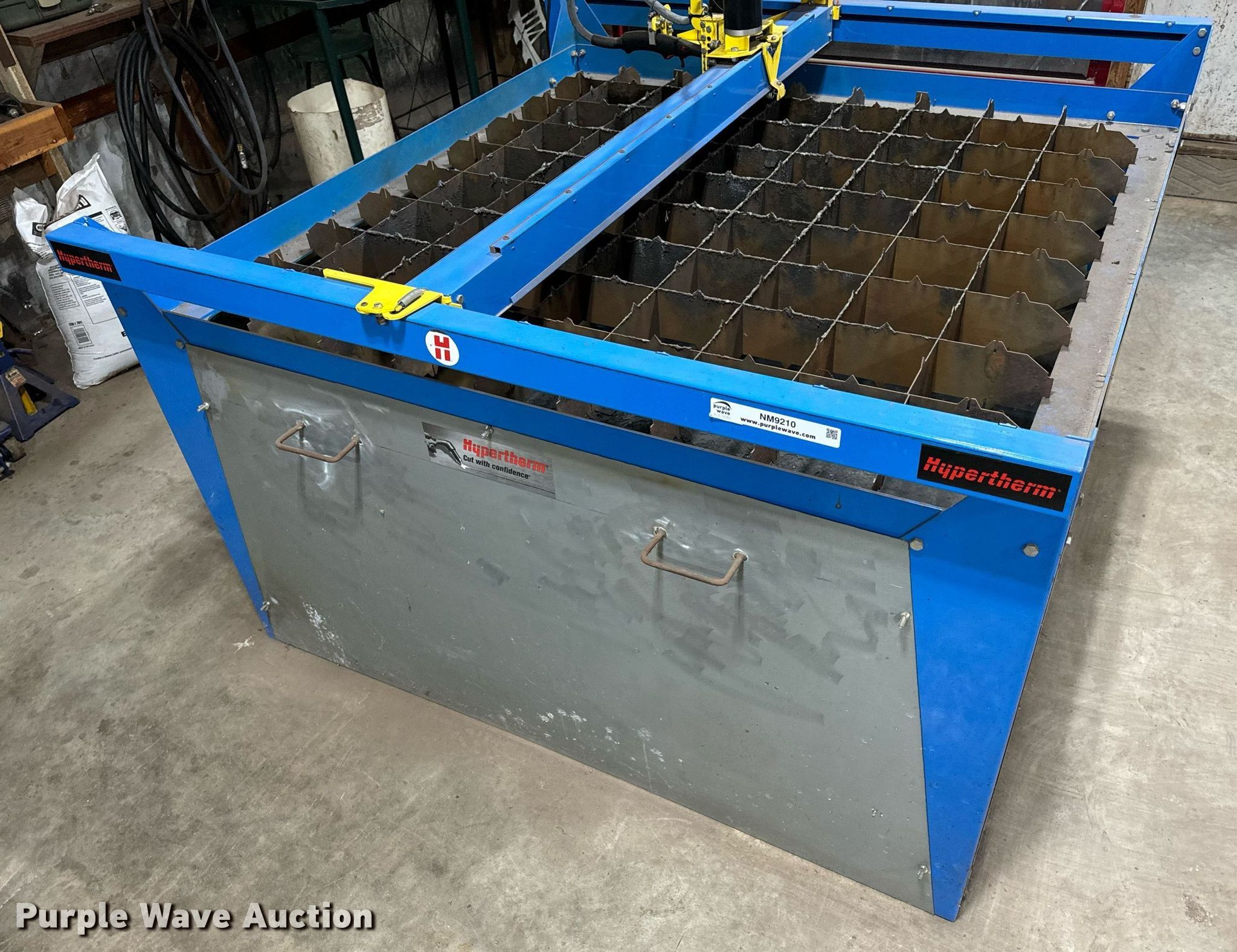 Purple Wave is selling a used Cutting Systems in Missouri. This item is a Hypertherm Powermax 65 automated plasma cutting table with the following: Overall dimensions: 60" x 64", Cutting area: 48" x 48", Height Control, Downdraft Ventilation system, Fine Cut kit, 45 Amp, Plasma Cam cutting table, Model DHC2, Serial: 23827, Splatter Shield, (7) software discs