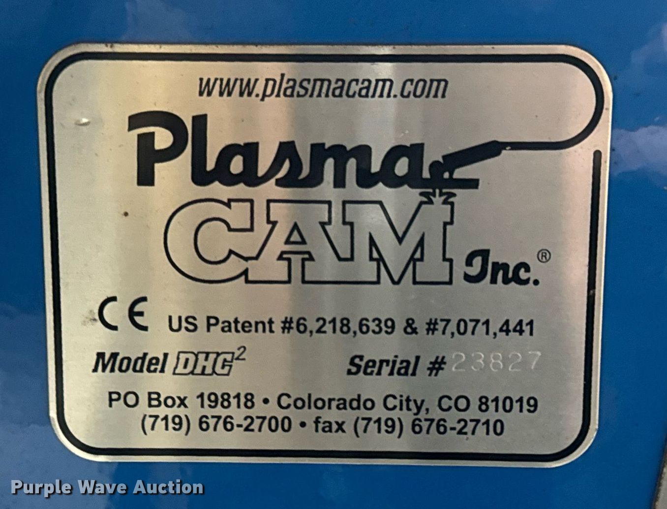 Hypertherm Powermax 65 automated plasma cutting table. Features. Overall dimensions: 60" x 64", Cutting area: 48" x 48" , Height Control , Downdraft Ventilation system , Fine Cut kit 45 Amp, Plasma Cam cutting table Model DHC2, Serial: 23827, Splatter Shield , (7) software discs. Notes Computer not included. 128 Highway H. Eugene, MO 65032