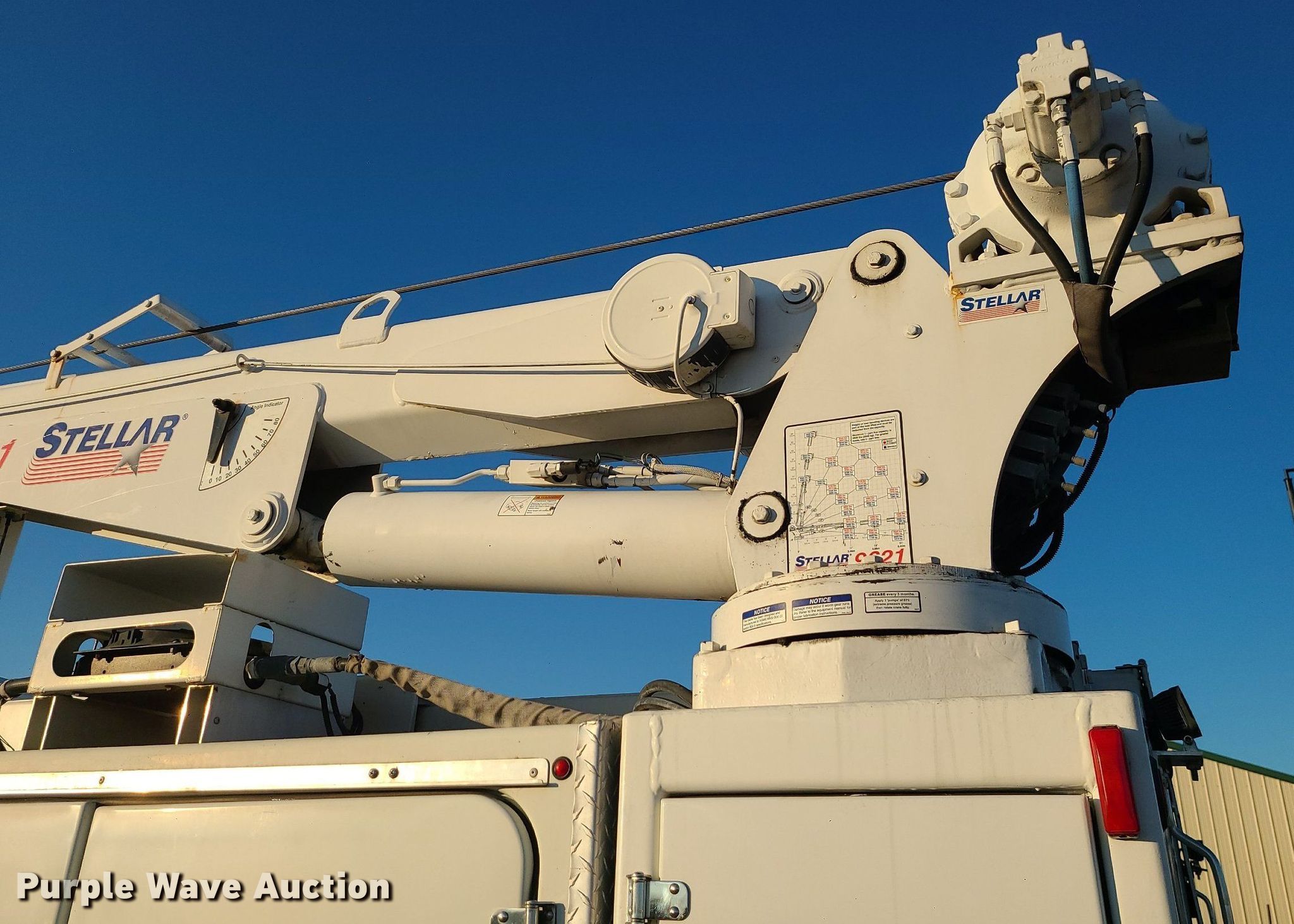 2013 International DuraStar 4300 utility / service truck. Miles: 204,221 on odometer, VIN: 1HTMMAAL1DH160869. Engine Displacement: 7.6L , Cylinders: 6, Fuel type: Diesel. Transmission Automatic. Chassis Axles: Single, Suspension: Spring, Brakes: Air, Dual PTO. Interior AC, heat, Heated mirrors, Power windows, power locks, Cruise control. Features Bed 13' L x 96" W, Crane Stellar 9621, Maximum lift capacity: 9,000 lbs. Tires Size: 275/80R22.5. Missouri title. Title has a lien that will be released following the close of the auction. Title distribution may be delayed up to 30 days from verification of funds. Wellington, MO 64097