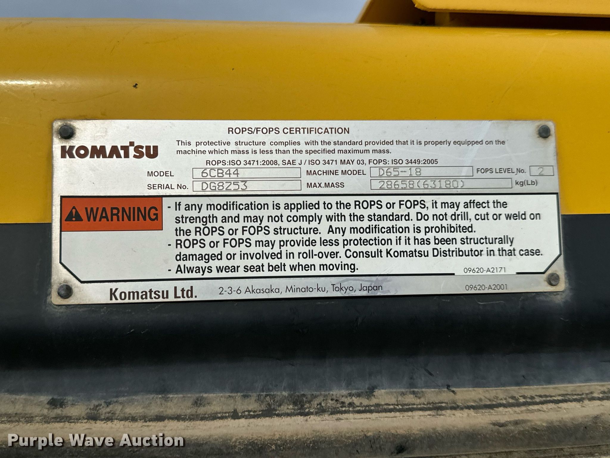 2019 Komatsu D65PXI-18 dozer has sold in Wichita, Kansas for $167200. Item NI9709 sold on February 1st, 2024.