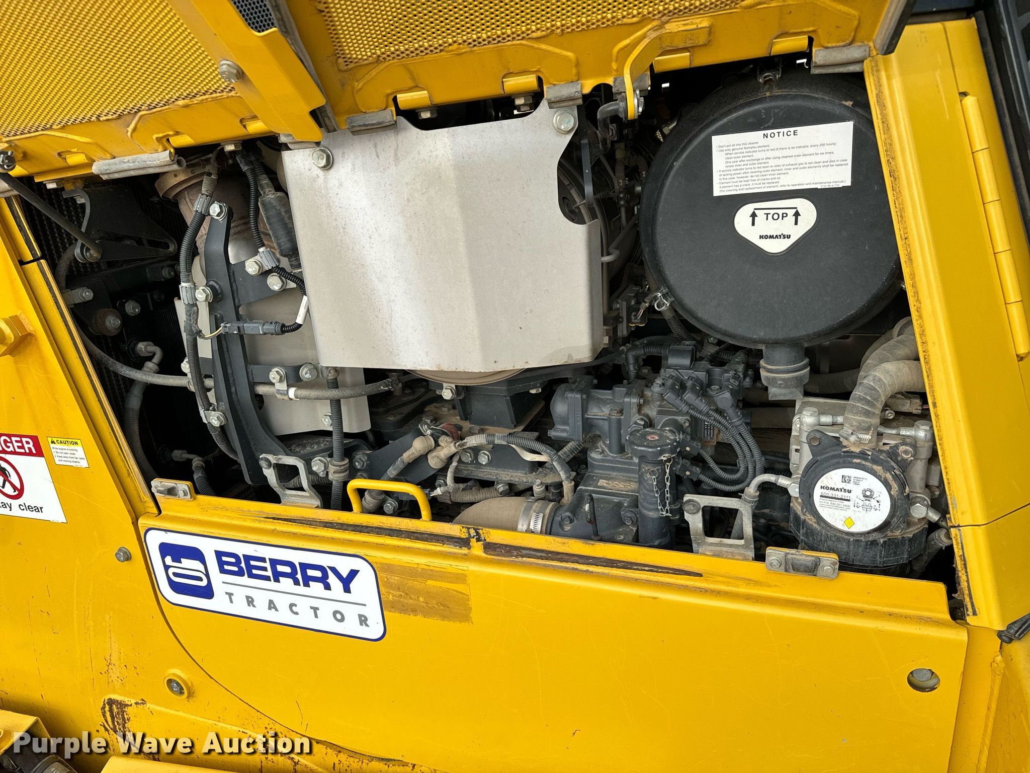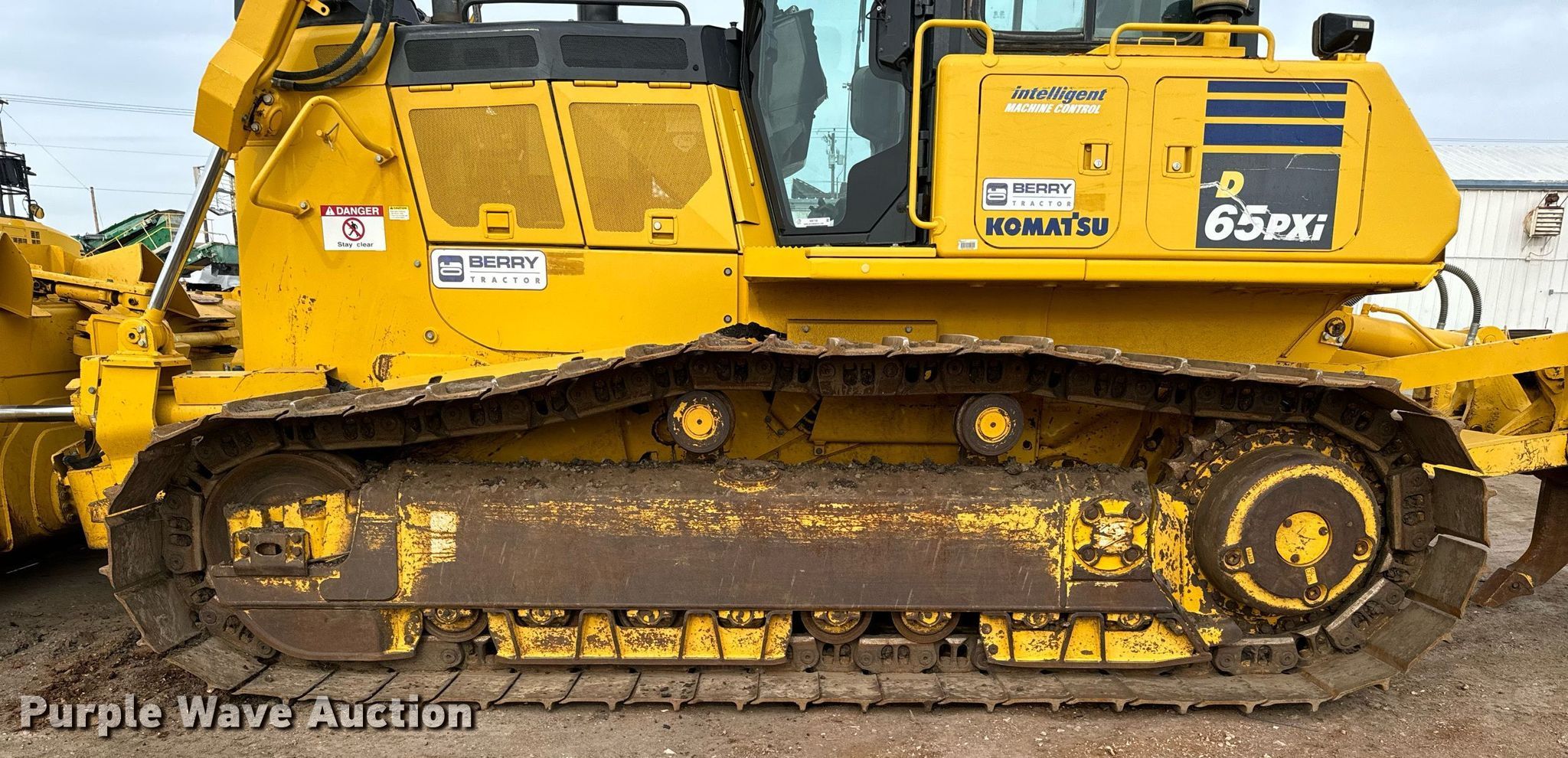 2019 Komatsu D65PXI-18 dozer. Hours: 5,613 on meter, Serial: KMT0D127TKA091851. Engine Komatsu SAA6D114E-6, Serial: 26908541, Displacement: 8.9L, Cylinders: 6, Fuel type: Diesel, HP: 220, kW: 164. Transmission Powershift, 3F - 3R. Operators station Enclosed cab, AC, Heat, Electronic Monitoring System panel, Intelligent machine control, UHF frequency, Grade control, Steering: Joystick. Features Dozer blade Type: 6-way, Straight, Width: 13' 1" W, Attachments Ripper Komatsu 4CD01-V, Shanks: 3.. Tracks Width: 30", Grouser pads: Single, Bottom rollers: 8, Track guards. Notes GPS monitor not included. Berry Tractor & Equipment. 930 South West Street. Wichita, KS 67213
