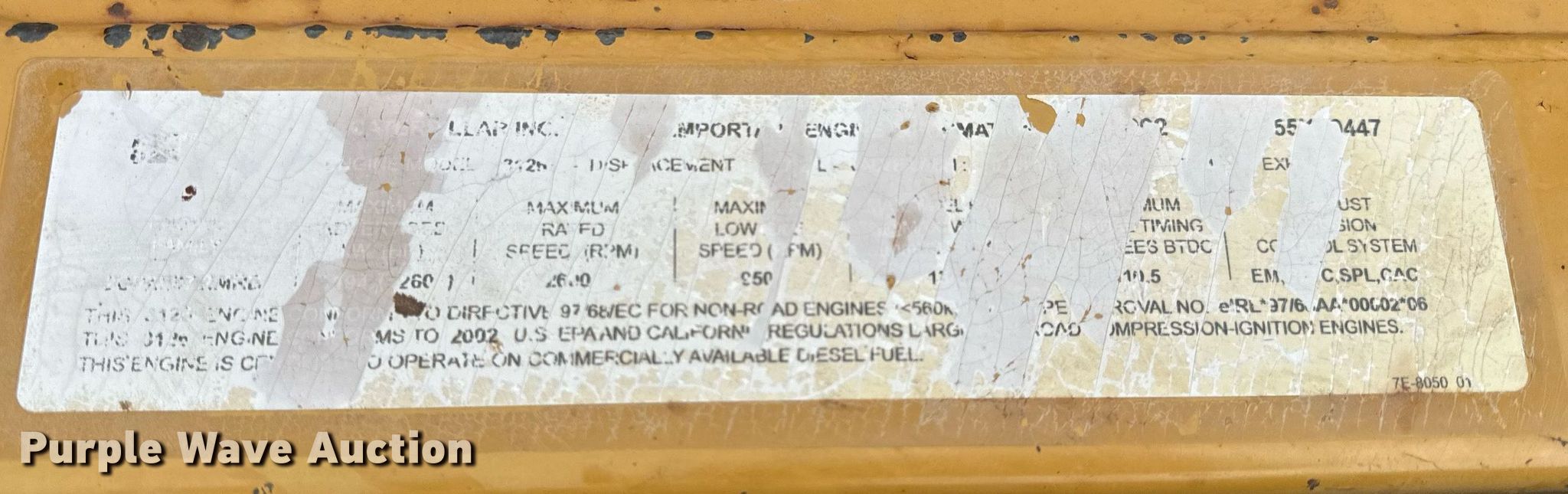 2002 Caterpillar 322C L excavator. Hours: 9,766 on meter, Serial: CAT0322CKBKJ00603, Unit #: 110-200603. Engine Caterpillar 3126, Displacement: 7.2L, Cylinders: 6, Fuel type: Diesel. Transmission Hydrostatic, Two speed travel. Operators station Enclosed cab, AC, heat. Features Boom Standard, Stick Stick length: 116", Thumb: Manual, Bucket Caterpillar, Width: 48", Teeth: 5. Tracks Width: 31.5", Steel, Grouser pads: Triple. Notes Non-operational AC, Control screen issues, does not display, Bucket pins issues, loose, Top roller missing on left side. Capital Sand Company. 700 Mokane Road. Jefferson City, MO 65101