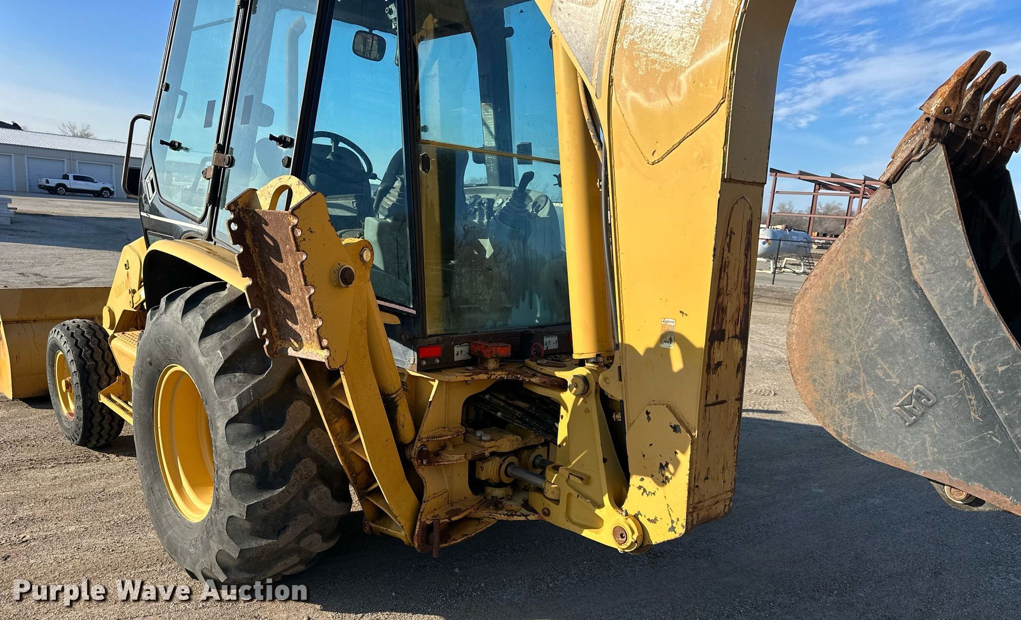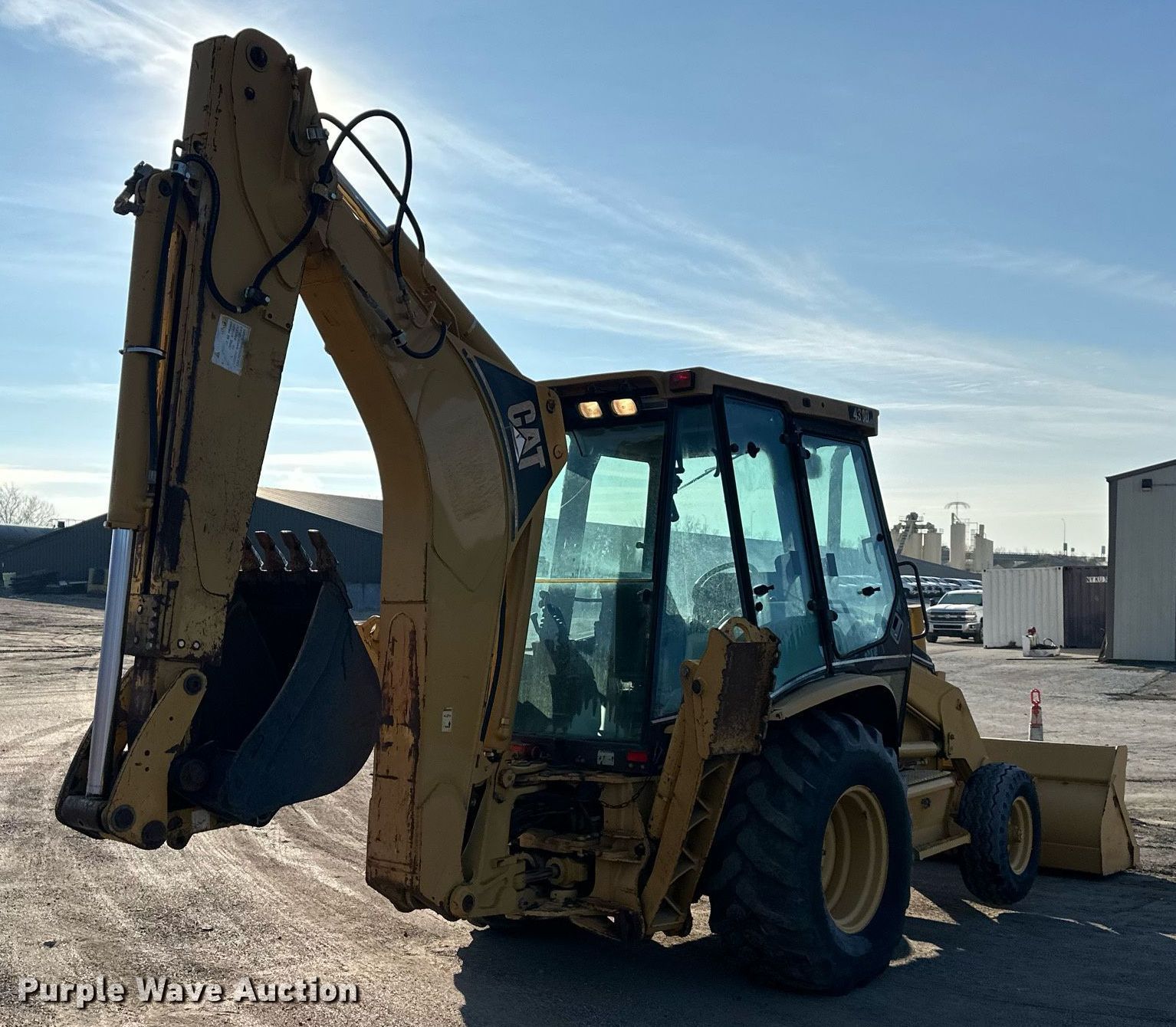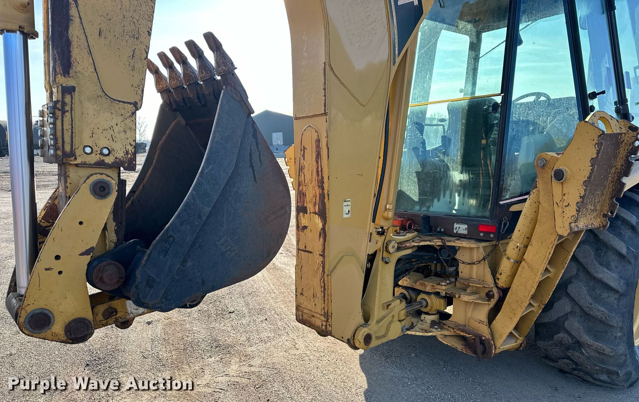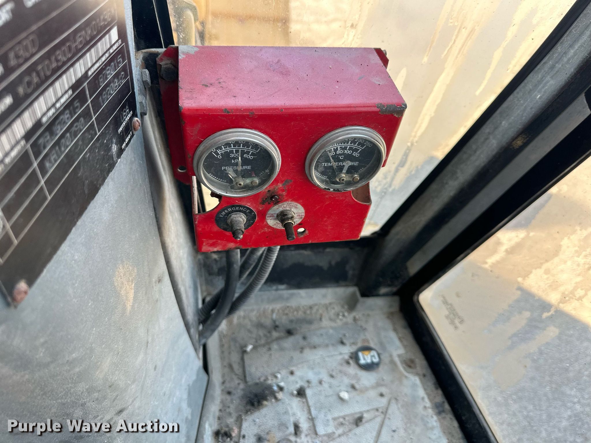 2002 Caterpillar 430D backhoe. Hours: 3,447 on meter, Serial: CAT043DDHBNK01436. Engine Caterpillar 3054T, Cylinders: 4, Fuel type: Diesel, HP: 98. Transmission Shuttle shift, 4F - 4R. Operators station Enclosed cab, Heat, Backhoe controls: Pilot control, Pattern changer. Features Loader Auxiliary hydraulics, Bucket Caterpillar , Width: 87", Backhoe Extendable stick, Auxiliary hydraulics, Bucket Caterpillar , Width: 23", Teeth: 5.. Tires Front: 11L-16, Rear: 19.5L-24. Notes Glass cracked. Herzog Contracting Corp.. Elwood, KS 66024