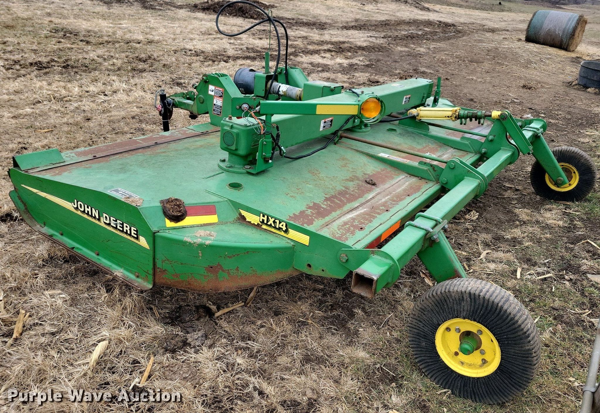 John Deere HX14 rotary mower. Features. Width: 14', Hydraulic lift, PTO: 1000. Tires Solid. Troy Boos Estate. 63899 750th Street. Massena, IA 50853