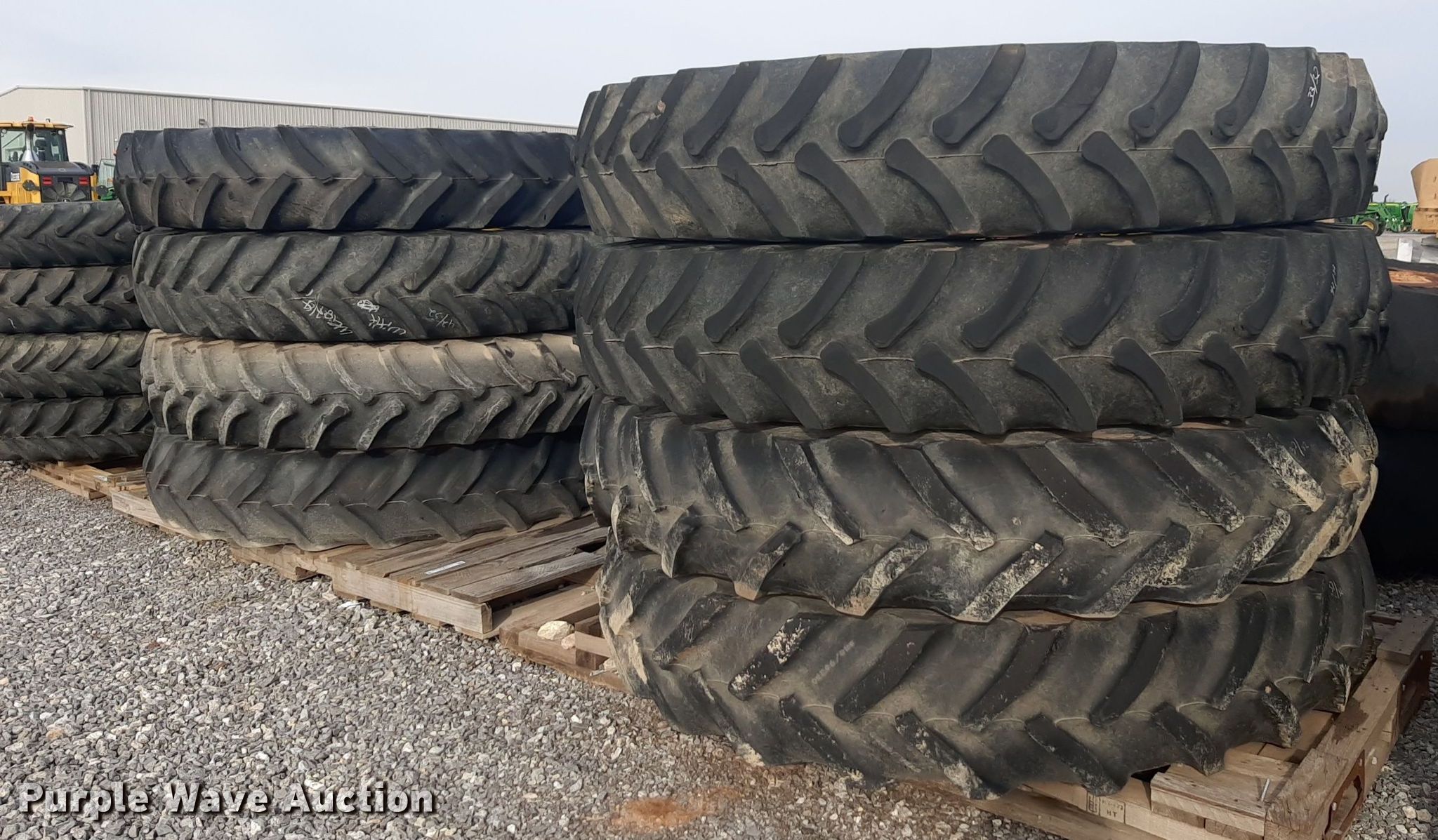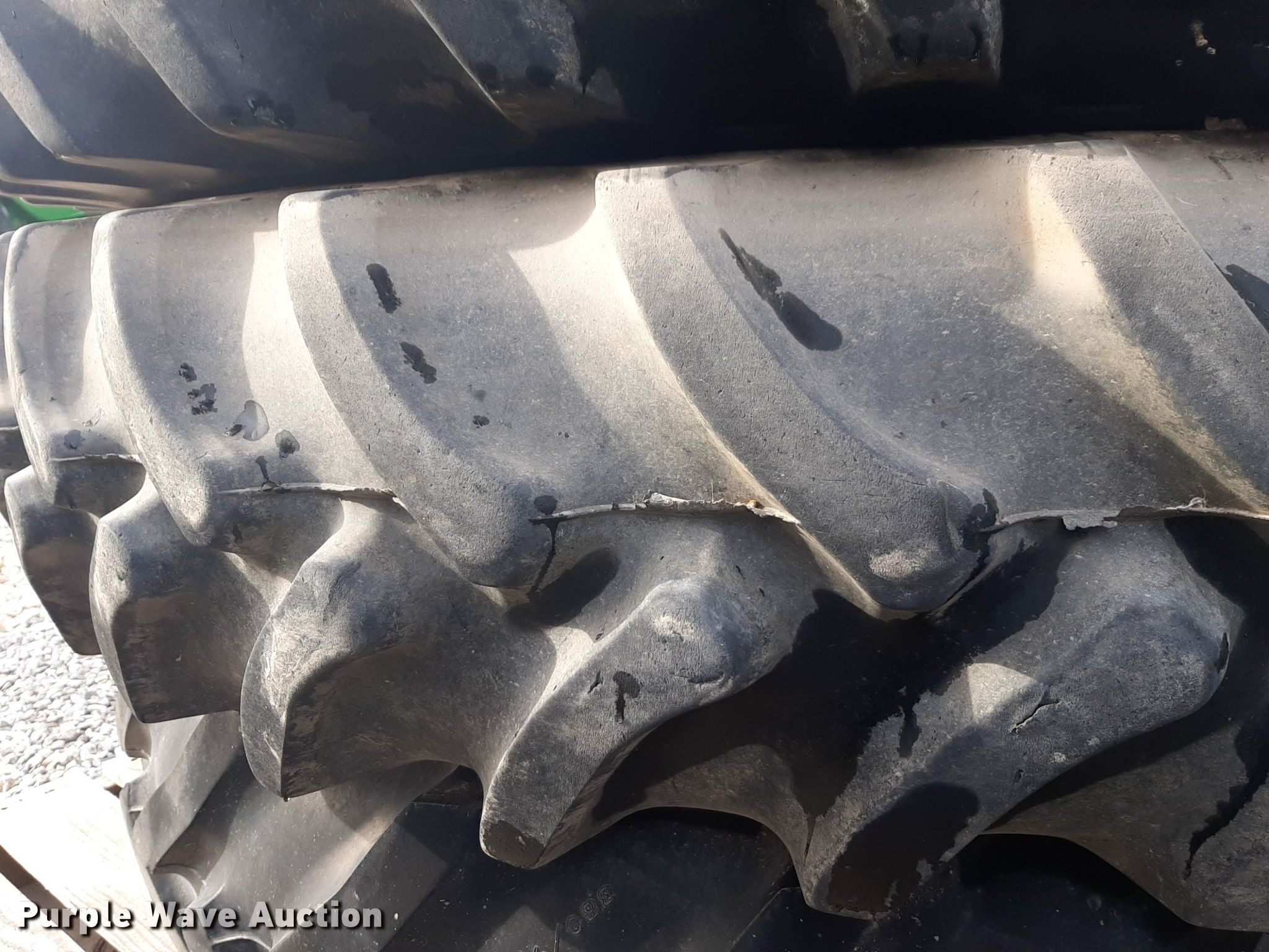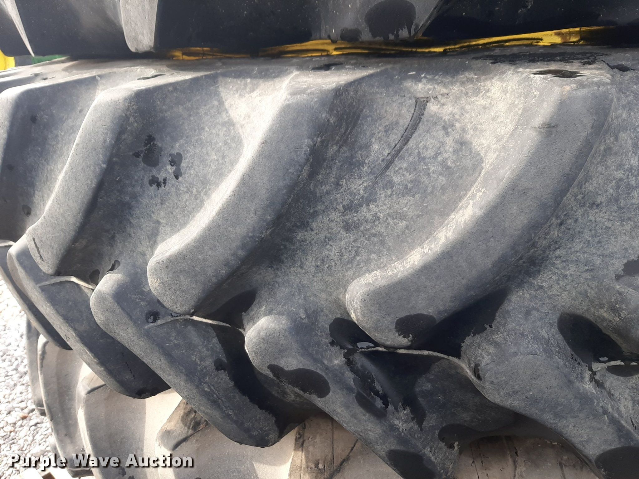 Purple Wave is selling a used Industrial Tires or Tracks in Oklahoma. This item is a (8) 380/90R54 tractor tires and wheels with the following: Removed from a John Deere