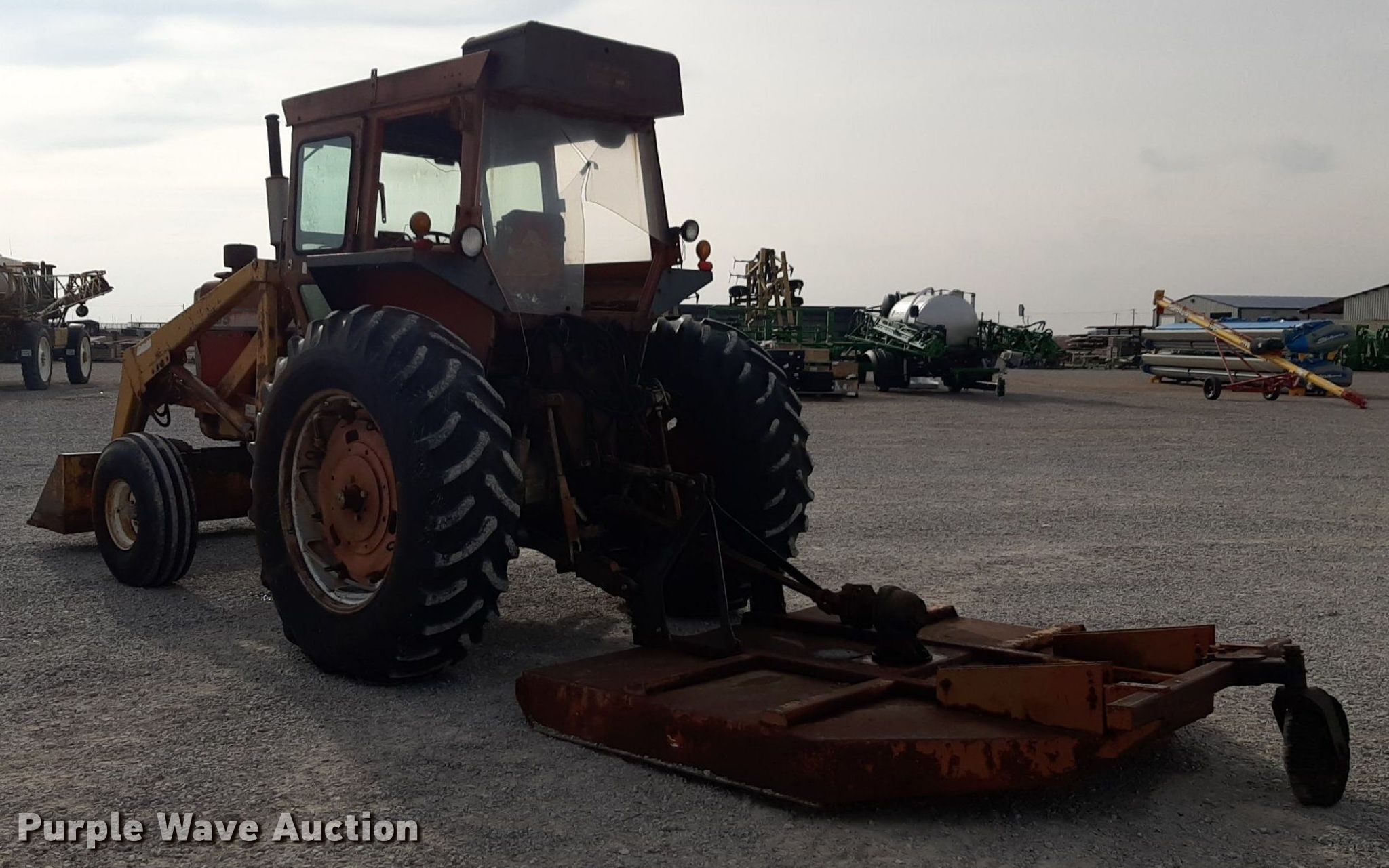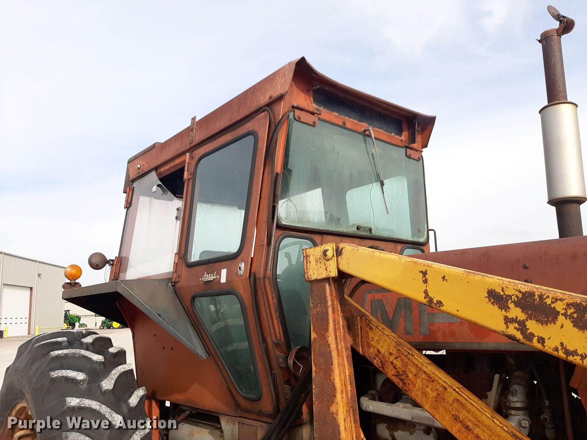 1973 Massey Ferguson 1105 tractor. Hours: 3,637 on meter, Serial: 9B37046. Engine Cylinders: 6, Fuel type: Diesel. Transmission Multi power. Features PTO: 540, Three point Top link, Hydraulic remote sets Rear: 2, Loader Controls: Two-lever, Bucket Width: 72", Rotary mower Width: 84". Tires Front: 11.00-16, Rear: 18.4-38. Notes Hydraulic leak, Fuel leak, Glass cracked. 3126 College Blvd. Alva, OK 73717