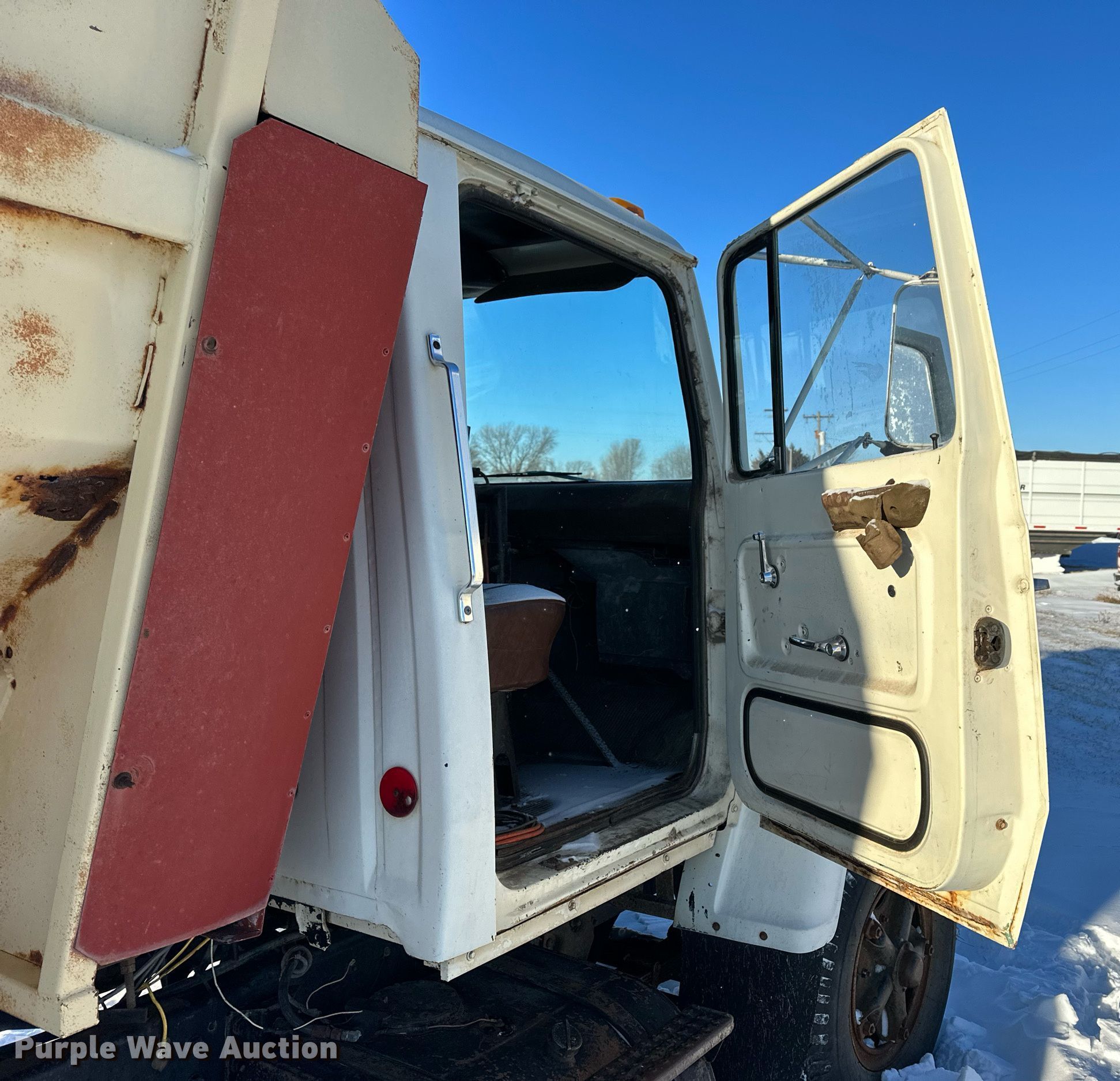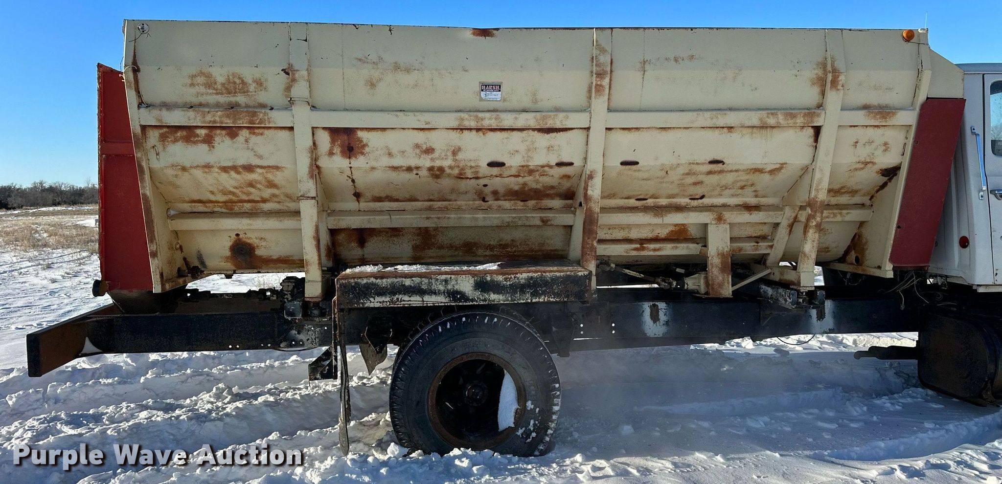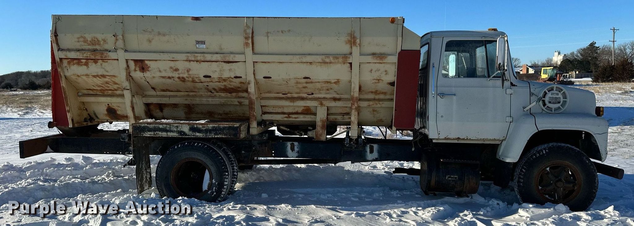 1979 Ford 800 feed delivery truck. Miles: 16,062 on odometer, VIN: N80BVEH1280. Engine Cylinders: 8, Fuel type: Gas. Transmission Manual, Speed: 5, plus 2. Chassis Axles: Single, Suspension: Spring, Brakes: Hydraulic, GVWR: 23,000 lbs, Wheelbase: 186". Interior Heat. Features Delivery bed Harsh, Discharge auger Side.. Tires Size: 10.00-20. Notes Dead battery. Transfer of ownership documentation will be an Kansas antique bill of sale TR-312. This form is the only ownership documentation that will be provided and is sufficient for an Kansas buyer to apply for an Kansas title. Bidders are responsible for verifying if this is sufficient to obtain title in their jurisdiction prior to bidding. Title distribution may be delayed up to 14 days from verification of funds. 121 1st Street. La Crosse, KS 67548