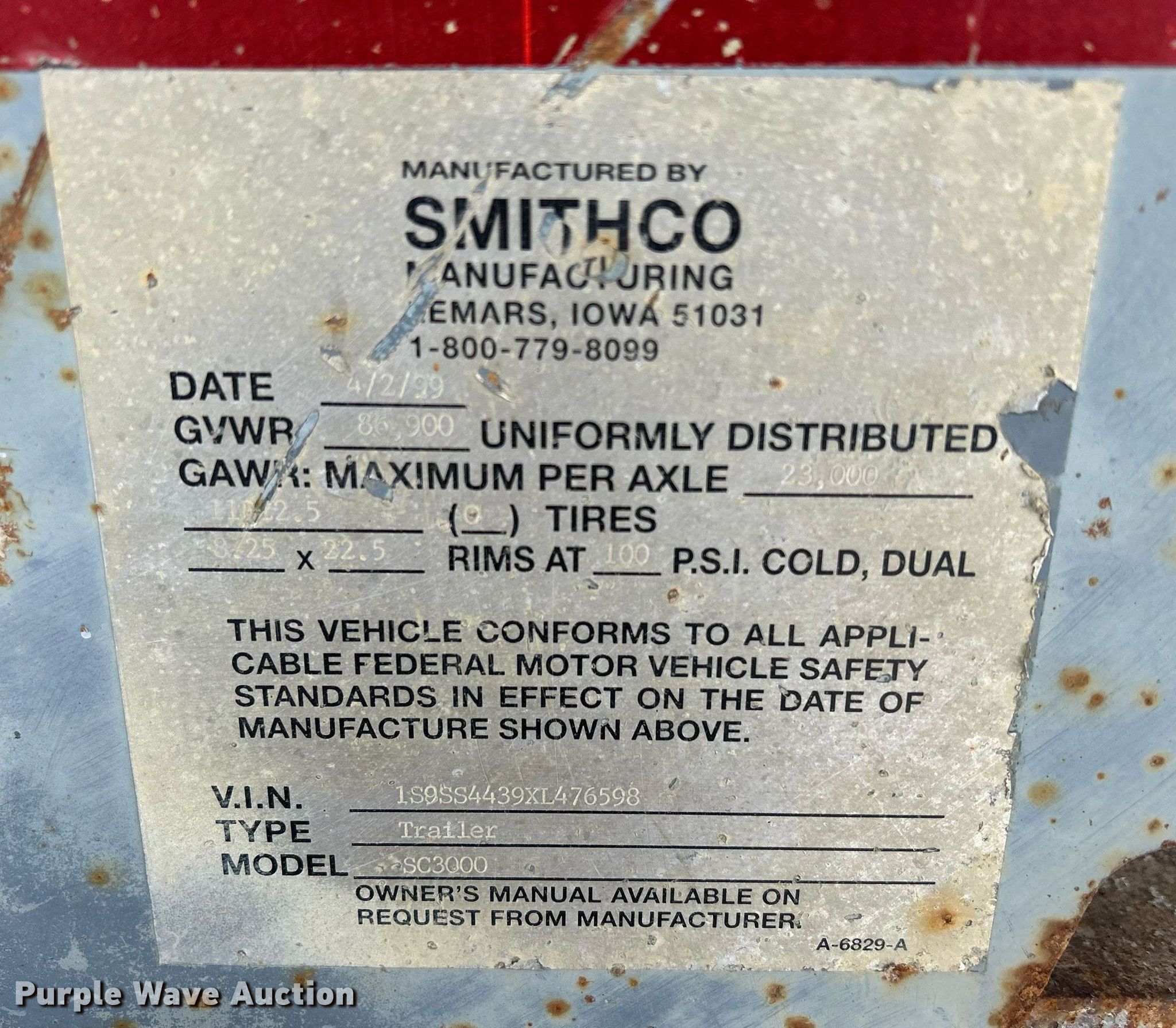 Purple Wave is selling a used Side Tilt Dump Trailer in Iowa. This item is a 1999 Smith Co. SC3000 side dump trailer with the following: VIN: 1S9SS4439XL476598