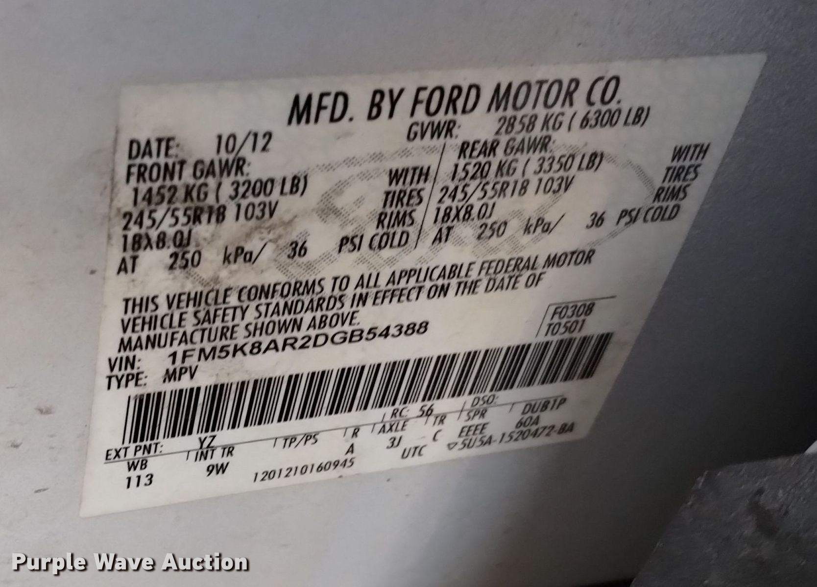 - VIN: 1FM5K8AR2DGB54388