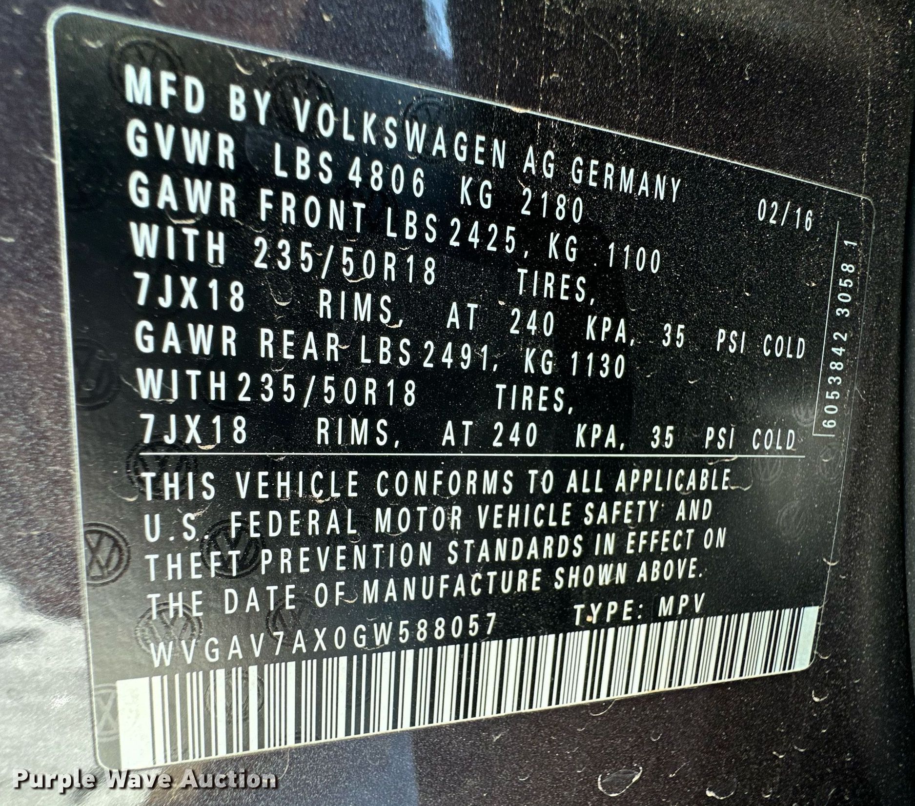 - VIN: WVGAV7AX0GW588057