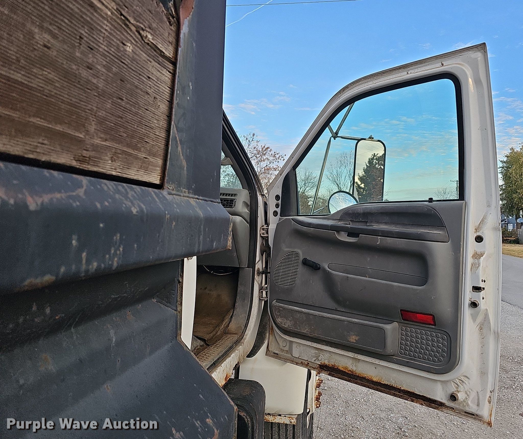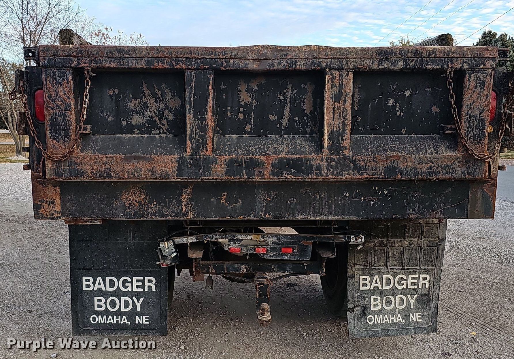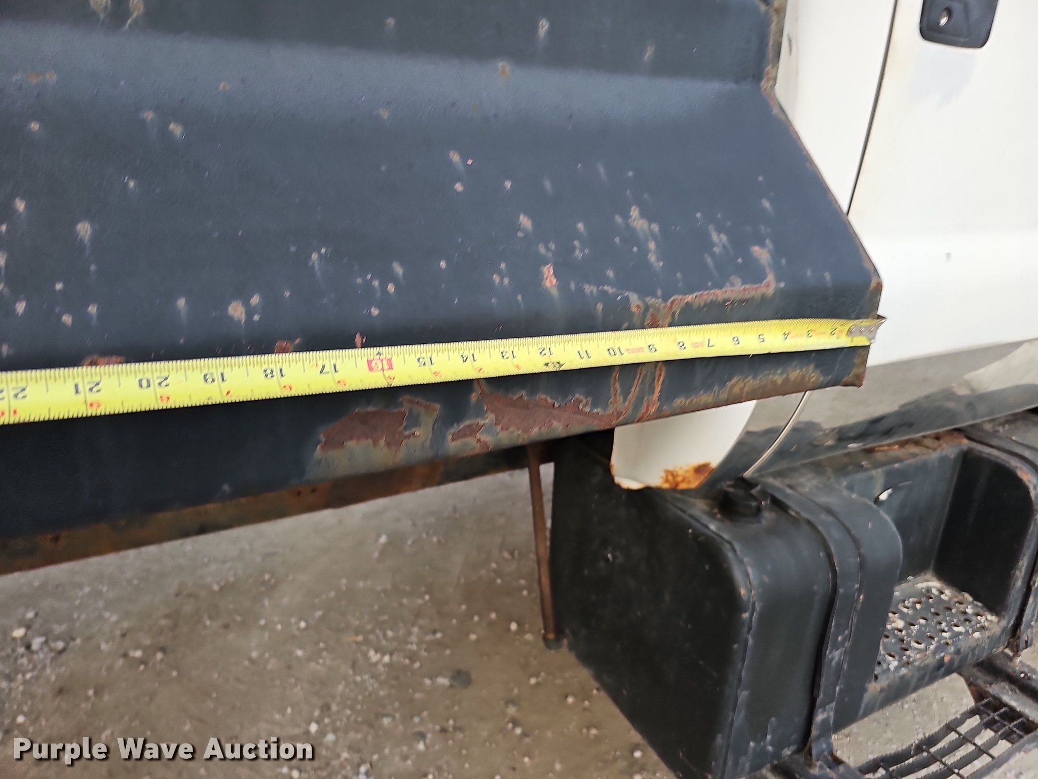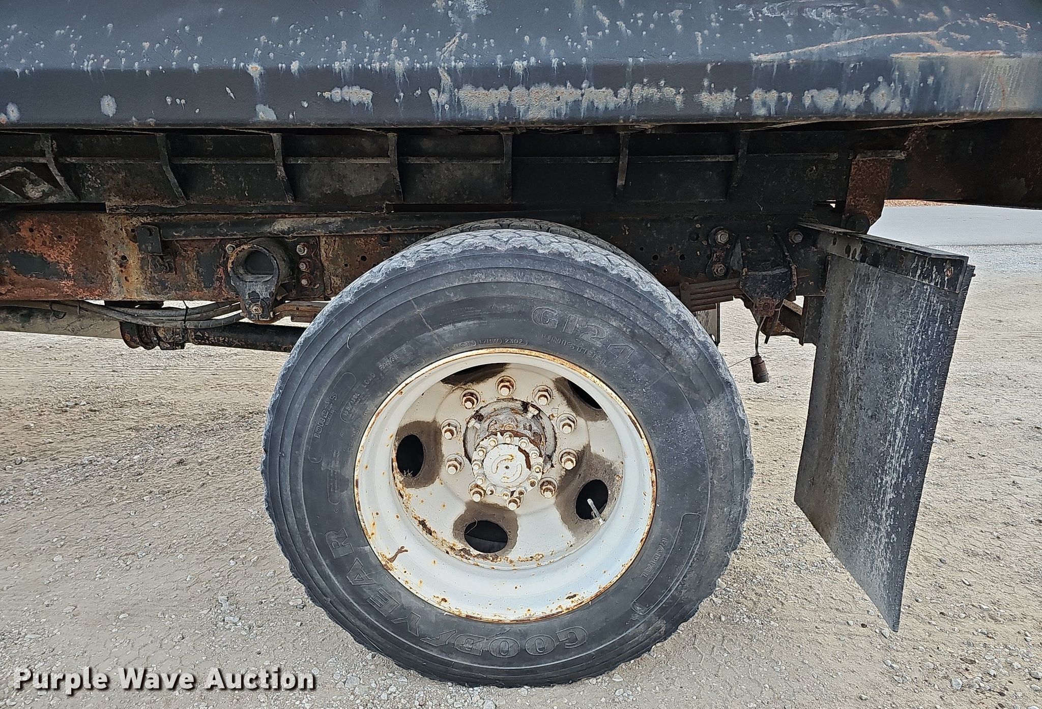 2003 Ford F650 Super Duty XLT dump truck. Miles: 59,192 on odometer, VIN: 3FDNF65Y43MB03697. Engine Cummins ISB, Displacement: 5.9L, Cylinders: 6, Fuel type: Diesel. Transmission Manual, Speed: 6. Chassis Double frame, Axles: Single, Suspension: Spring, Brakes: Hydraulic, PTO, GVWR: 26,000 lbs FAWR: 8,500 lbs, RAWR: 17,500 lbs, Wheelbase: 196". Interior AC, Heat, Cruise control, Brake controller. Features Dump bed 14' L x 96" W, Side height: 18", Side board height: 12", Bed type: Steel, Ram: Single, End gate: Manual. Tires Front: 295/75R22.5, Rear: 10R22.5. Notes Dash warning indicator: ABS, Brake, Windshield chipped or cracked, Engine oil leak. Nebraska title. 5002 E Platteview Drive. Cedar Creek, NE 68016