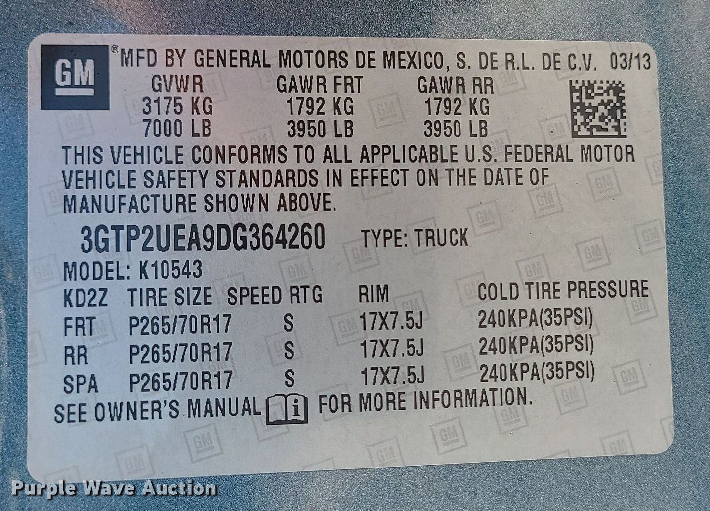 Purple Wave is selling a used 1/2 Ton Pickup or Van in Missouri. This item is a 2013 GMC Sierra 1500 Crew Cab pickup truck with the following: Miles: 281,433 on odometer, VIN: 3GTP2UEA9DG364260