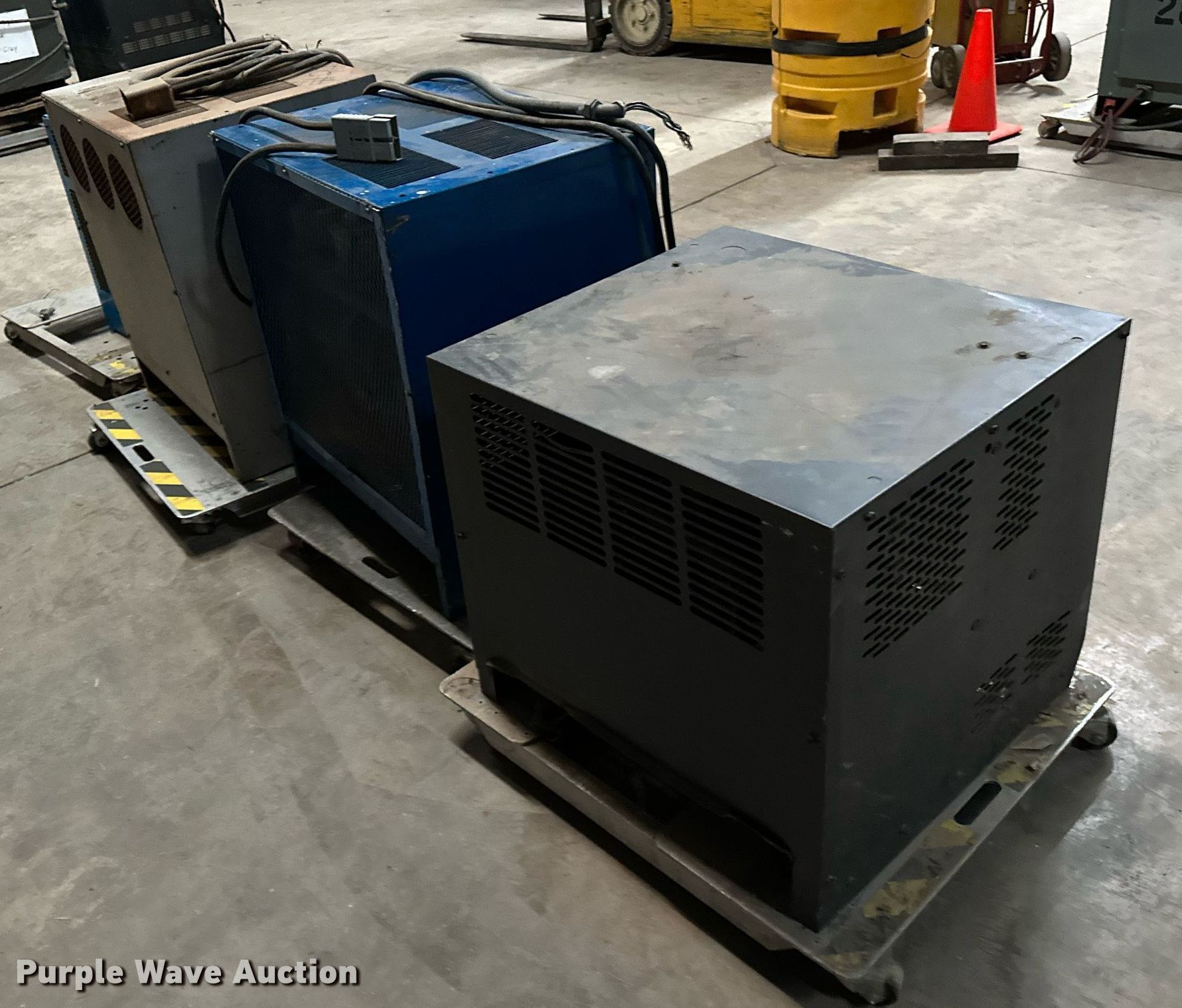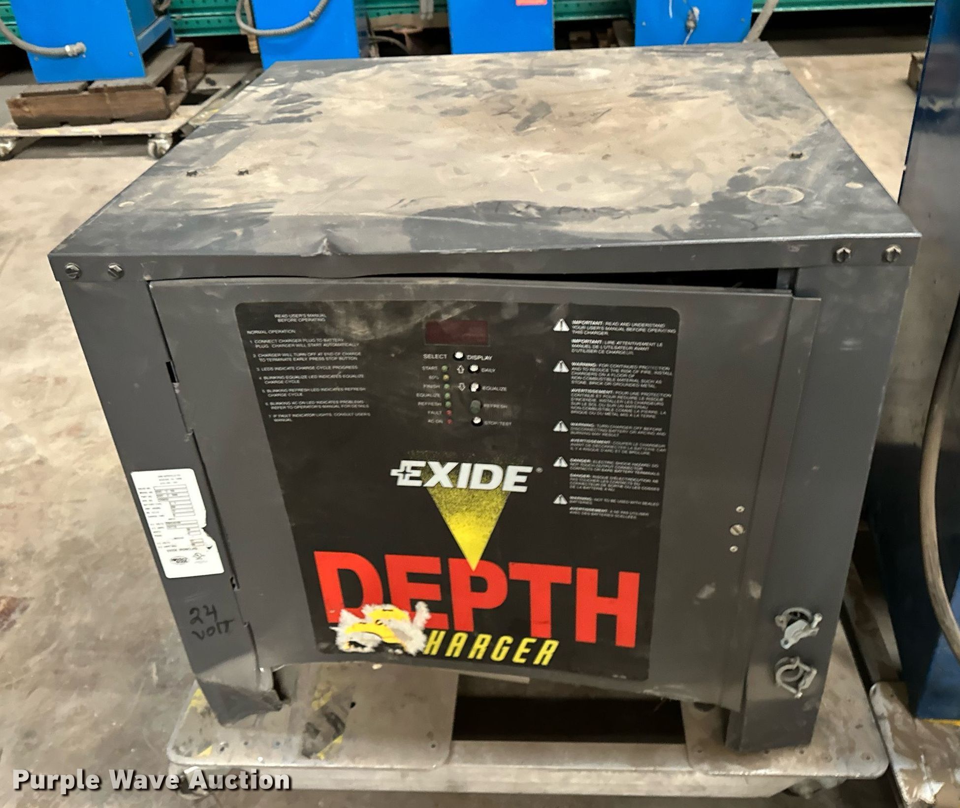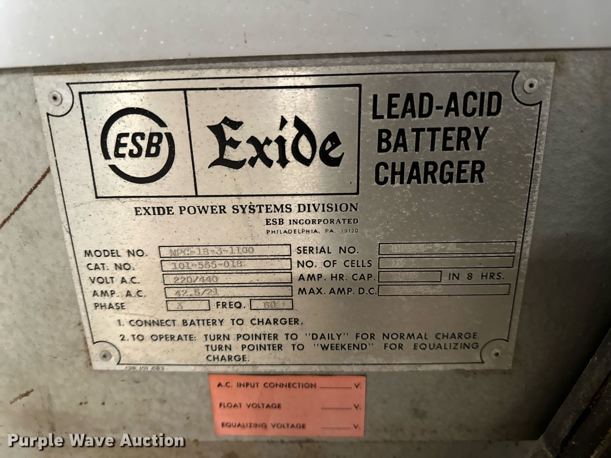 (4) Exide forklift battery chargers. 24 volts, Single phase, (3) three phase. Notes Casters not included, Unknown operating condition. ARS America, Inc.. 200 NE 48th St. Oklahoma City, OK 73105