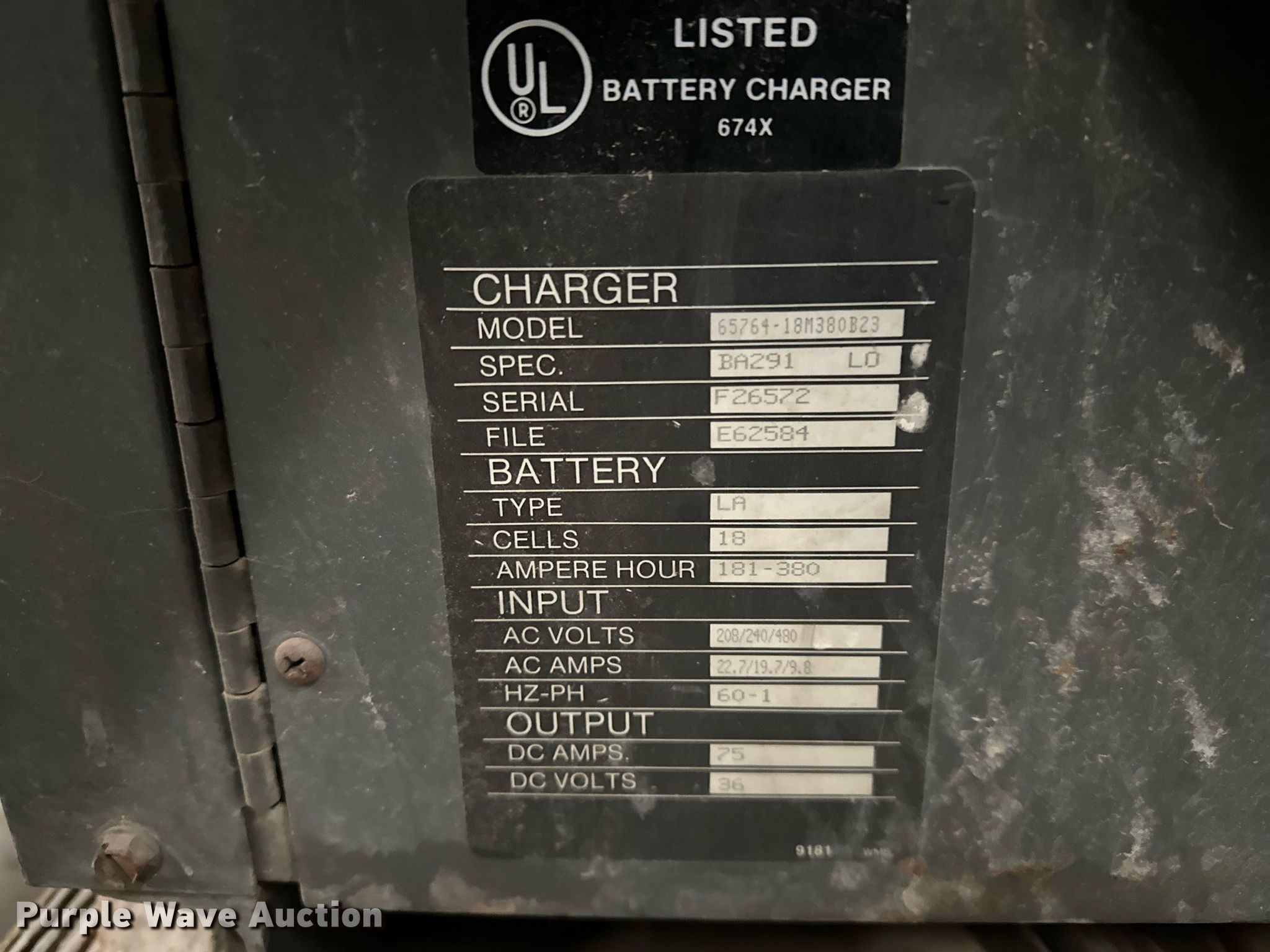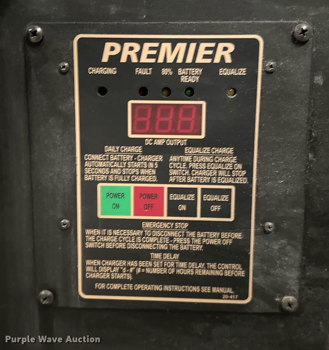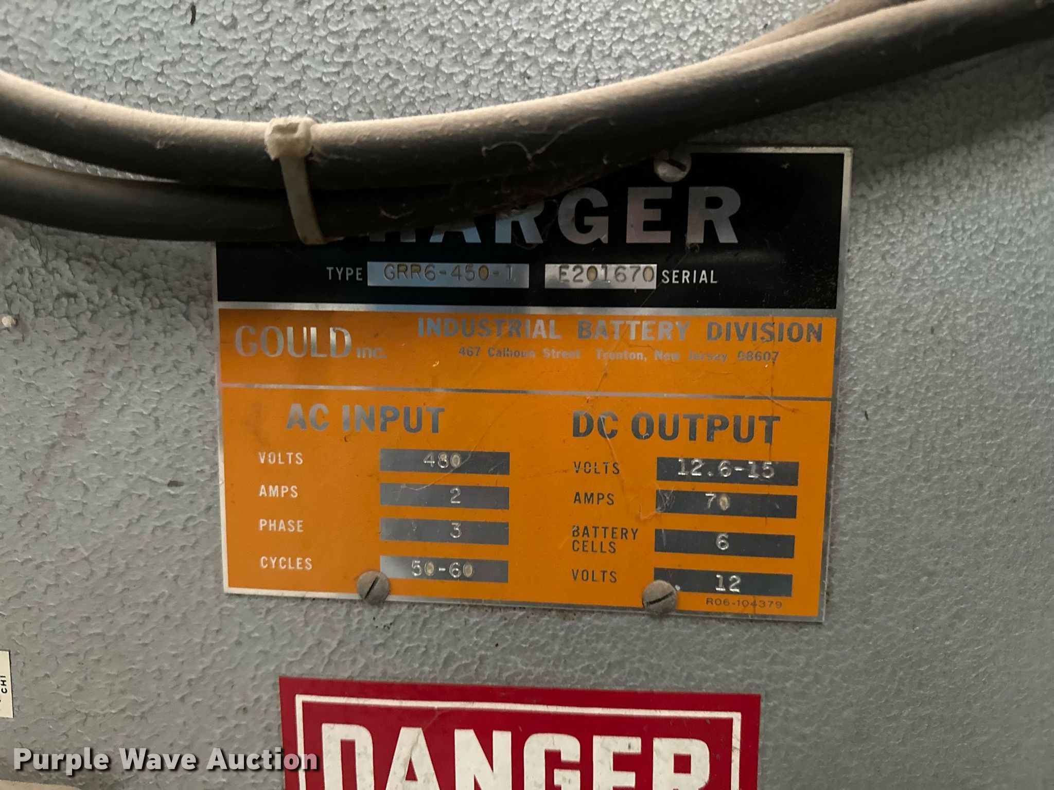Purple Wave is selling a used Forklift Attach. in Oklahoma. This item is a (4) forklift battery chargers with the following: Tennant 2200, Volts: 36, Single phase, Kodiak Premier, Volts: 36, Phase: Three, Gen 80, Volts: 36, Single phase, Gould, Volts: 12, Phase: Three