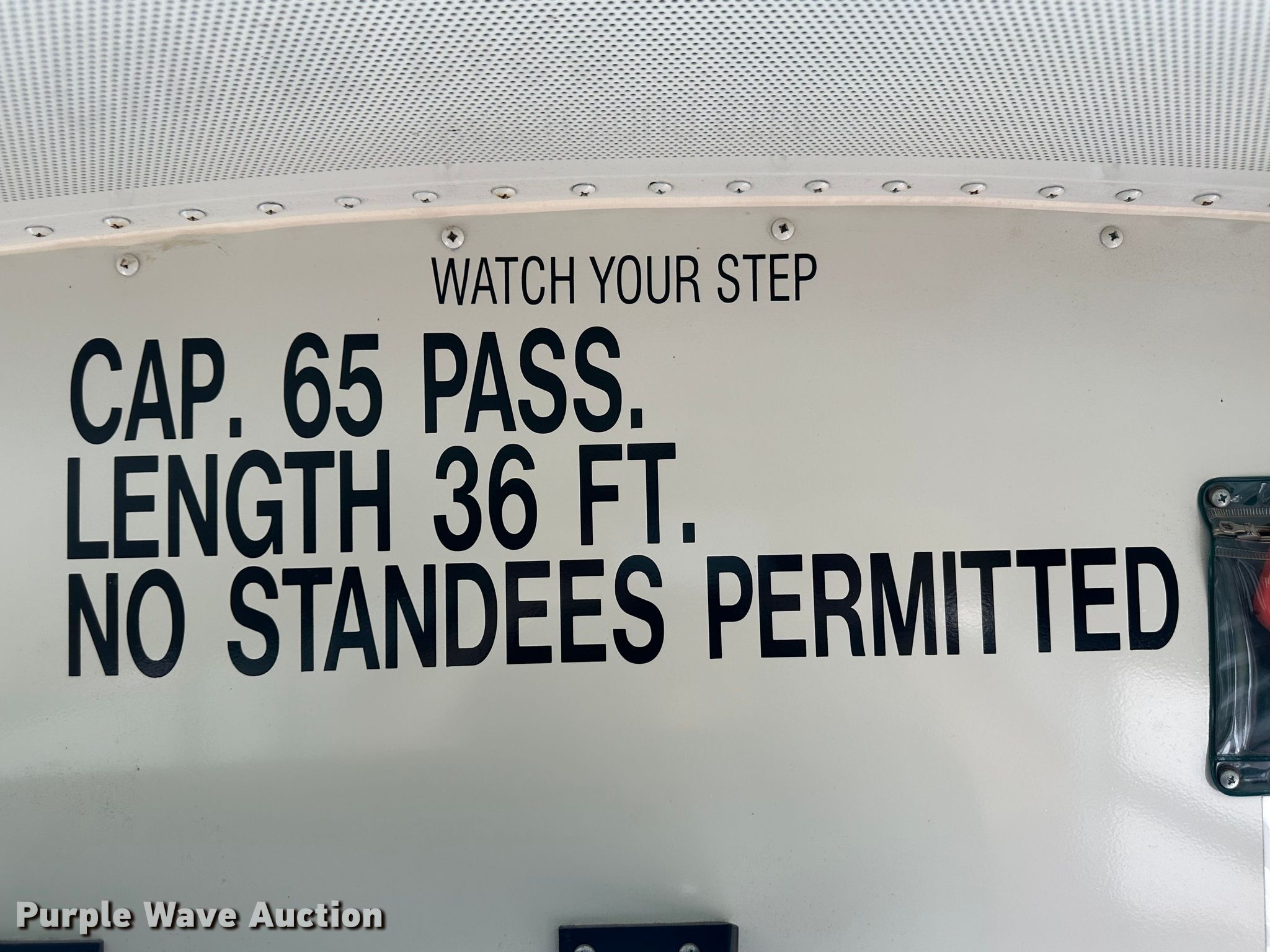 2008 International CE200 school bus. Miles: 34,954 on odometer, VIN: 4DRBUAFPX8B493110. Engine International VT365, Displacement: 6.0L, Cylinders: 8, Fuel type: Diesel. Transmission Automatic. Chassis Axles: Single, Suspension: Spring, Brakes: Air, GVWR: 29,800 lbs. Interior AC, Heat, Heated mirrors, Cruise control, Electric passenger sliding door, Passengers: 65. Tires Size: 11R22.5. Oklahoma title. Title distribution may be delayed up to 14 days from verification of funds. 15107 North 137th East Avenue. Collinsville, OK 74021