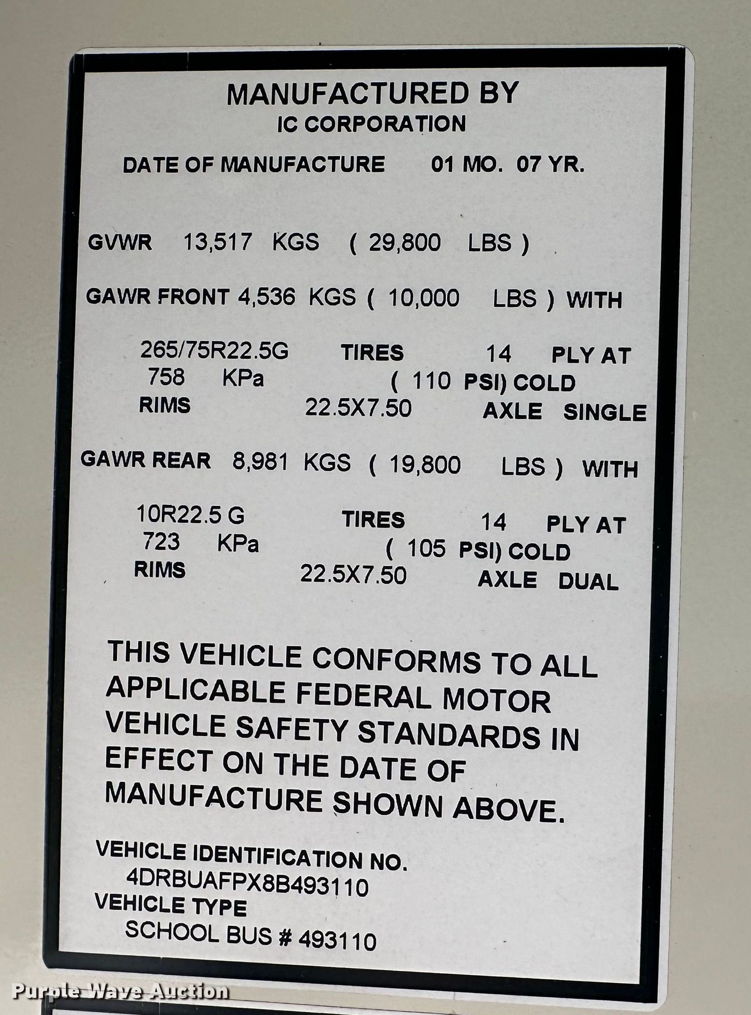 Purple Wave is selling a used Bus in Oklahoma. This item is a 2008 International CE200 school bus with the following: Miles: 34,954 on odometer, VIN: 4DRBUAFPX8B493110