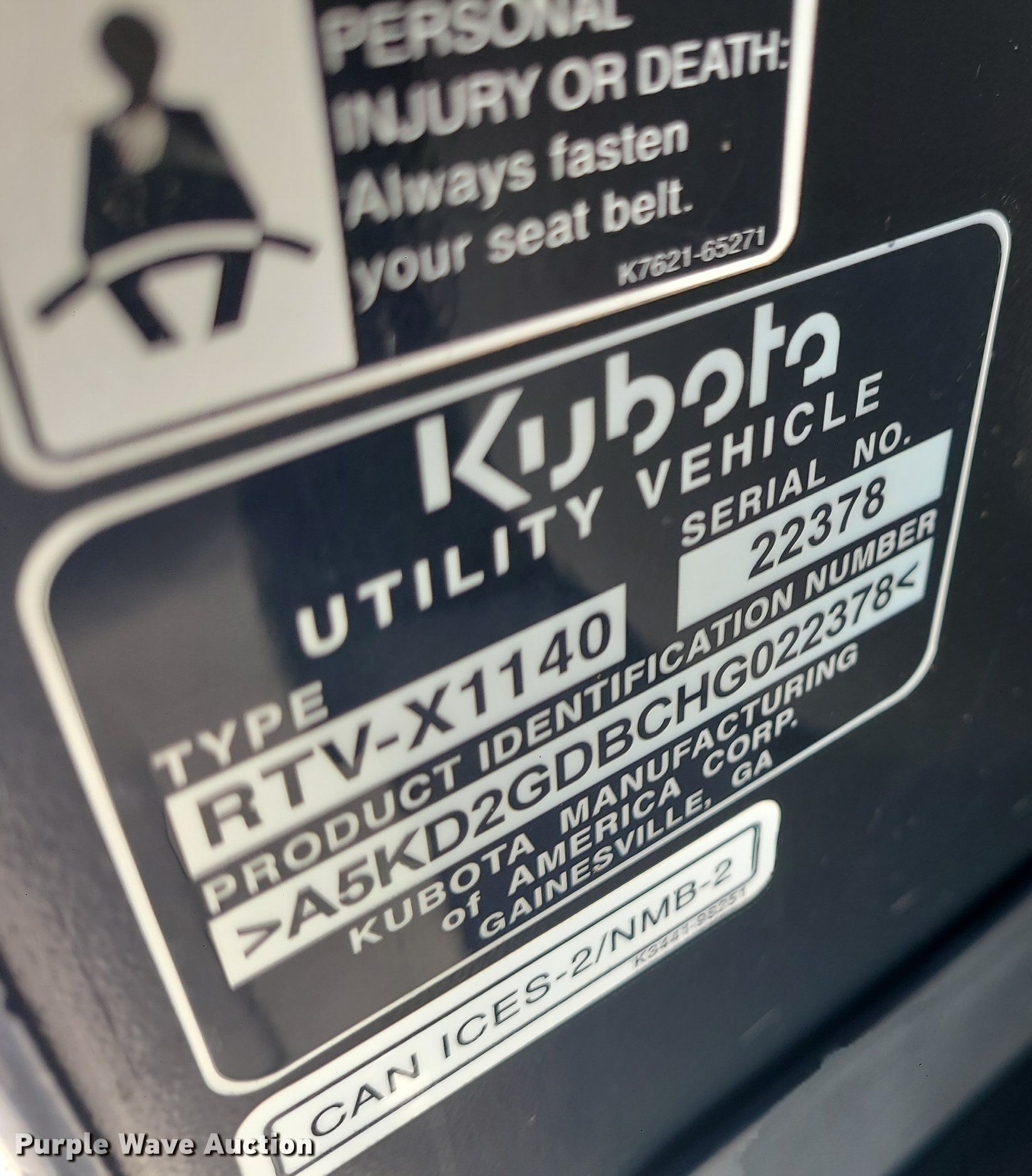 Purple Wave is selling a used Utility Vehicle in Missouri. This item is a Kubota RTVX1140 utility vehicle with the following: Miles: 351 on odometer, Hours: 89 on meter, VIN: A5KD2GDBCHG022378
