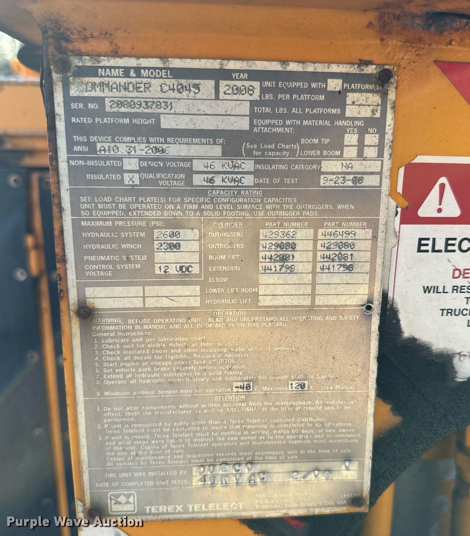 Purple Wave is selling a used Digger Derrick Truck in Massachusetts. This item is a 2009 Sterling Acterra digger derrick truck with the following: Miles: 126,117 on odometer, Hours: 1,885 on meter, VIN: 2FZACHBS89AAE2430