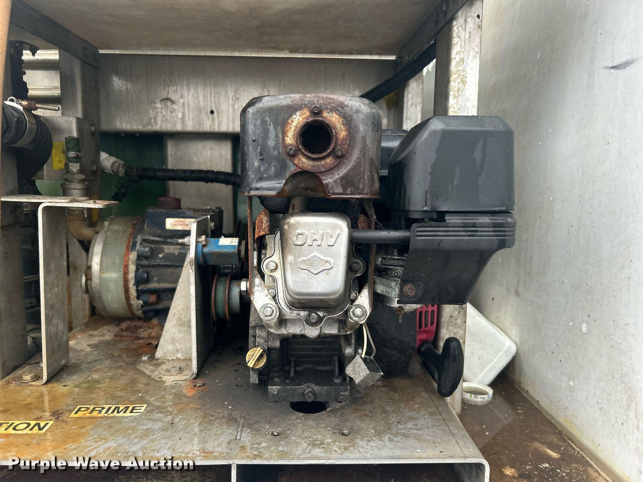 2012 Ford F450 Super Duty sprayer truck. Miles: 102,506 on odometer, VIN: 1FDUF4GY0CEB46601. Engine Displacement: 6.8L, Cylinders: 10, Fuel type: Gas. Transmission Automatic. Chassis Axles: Single, Suspension: Spring, Brakes: Hydraulic, GVWR: 16,500 lbs, Wheelbase: 165". Interior AC, Heat, Auxiliary controls. Features Flatbed 12' 6" L x 96" W, (2) tanks Capacity: 300 gallons, Briggs & Stratton single cylinder gas engine, Hose reel, Gate-LLC pump PSI: 125. Tires Size: 225/70R19.5. Notes Unknown operating condition of Briggs & Stratton engine. Oklahoma title. Title distribution may be delayed up to 14 days from verification of funds. 15107 North 137th East Avenue. Collinsville, OK 74021