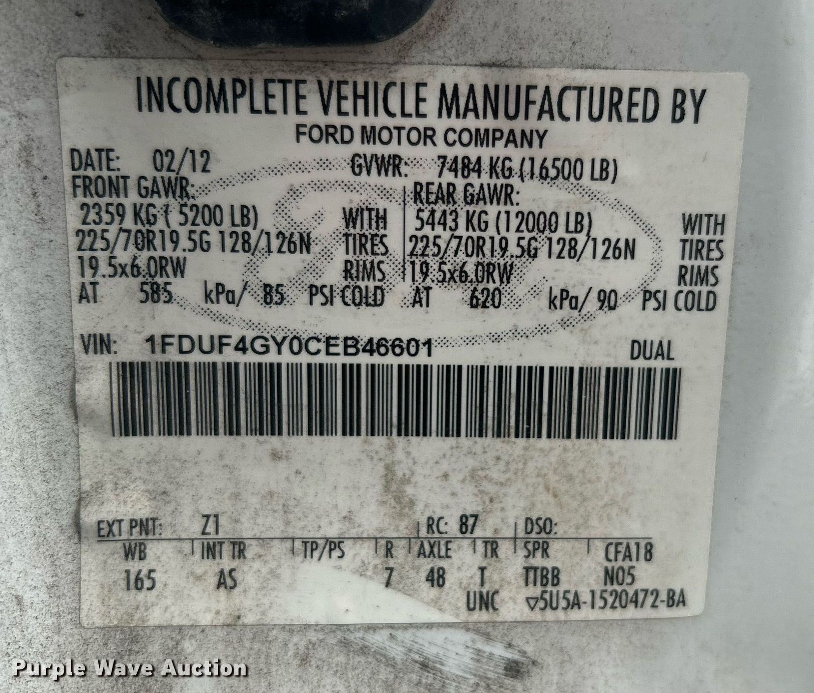 - VIN: 1FDUF4GY0CEB46601