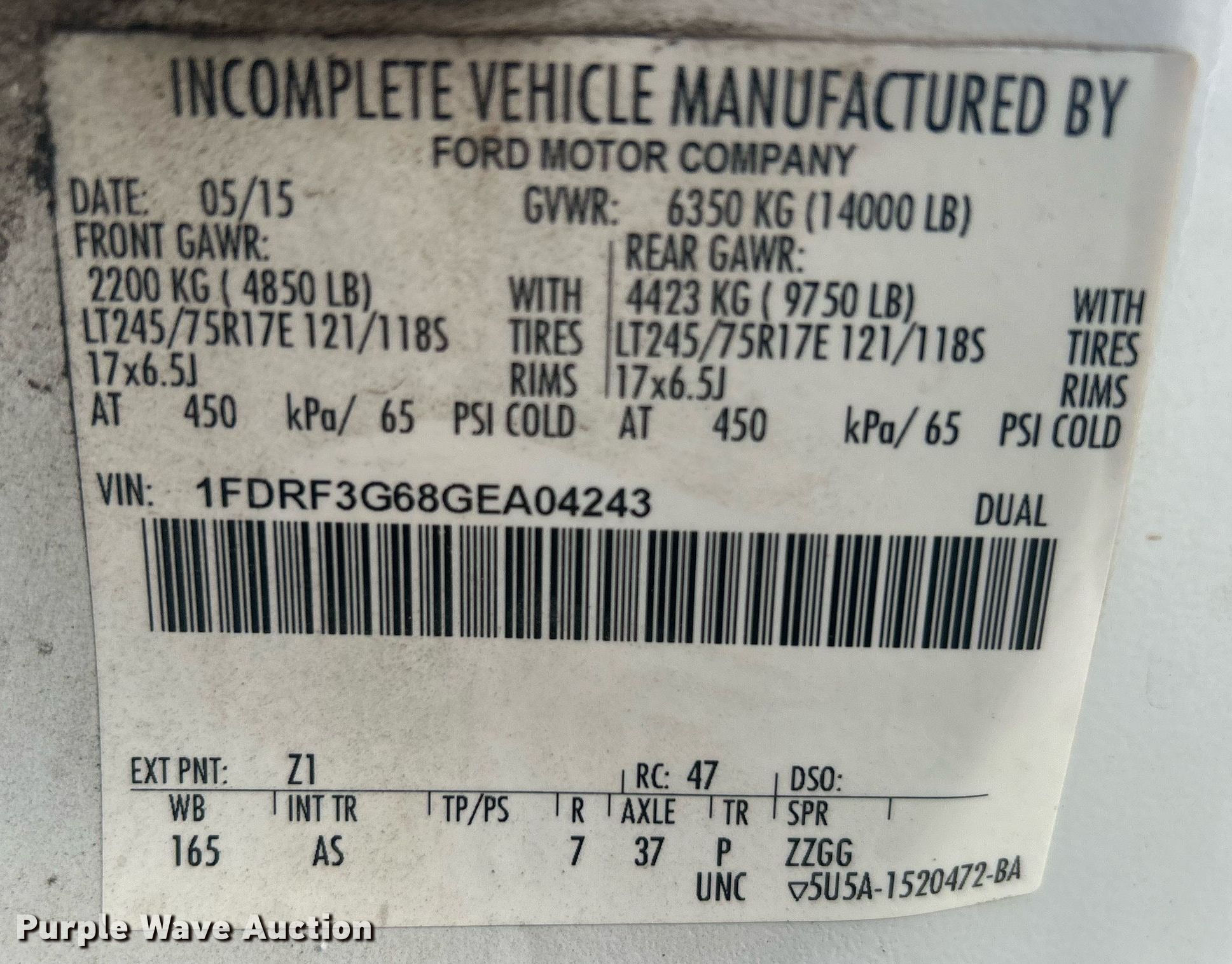 - VIN: 1FDRF3G68GEA04243