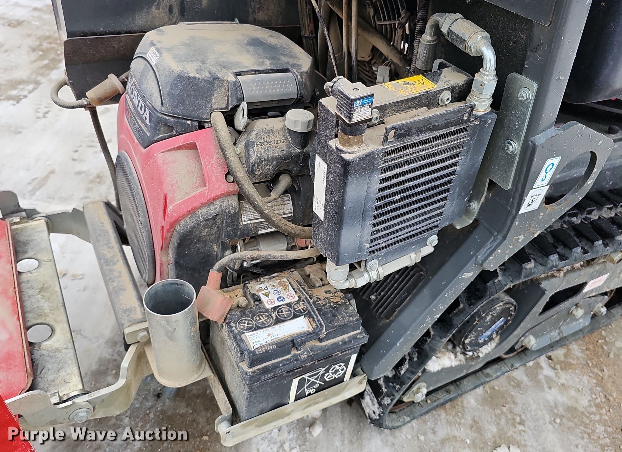 2022 Allen AT14S concrete buggy. Hours: 77 on meter, Serial: 1140721018. Engine Honda GX630, Displacement: 688 cc, Cylinders: 2, Fuel type: Gas. Transmission Hydrostatic. Features Hopper: 62" L x 30" W, Hydraulic dump, Swivel bucket. Tracks Width: 7", Rubber. Phoenix Pools. 8603 G Street. Omaha, NE 68127