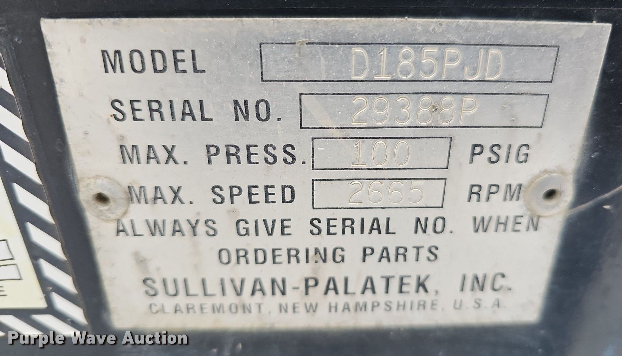 Purple Wave is selling a used Air Compressor in Nebraska. This item is a Sullivan Palatek D185PJD air compressor with the following: Hours: 1,096 on meter, Serial: 29388P
