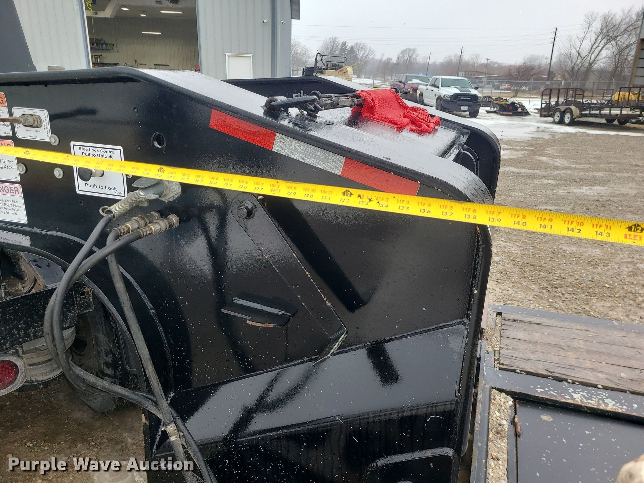 2021 Kaufman lowboy equipment trailer. VIN: 1K9FR4337MB367055. Dimensions Overall: 53' L x 102" W, Deck: 26' L x 102" W, Top deck length: 12', Rear deck length: 14' 6". Features Deck type: Wood, Neck type: Detachable, Self-contained hydraulics, Honda GX390 gas engine. Chassis Suspension: Air, Brakes: Air, Axles: Triple, GVWR: 133,000 lbs. Tires Steel wheels, Size: 275/70R22.5. Notes Semi truck not included. Missouri title. Title distribution may be delayed up to 14 days from verification of funds. S&S Pipeline Services. 424 N Harding Ave. Sedalia, MO 65301