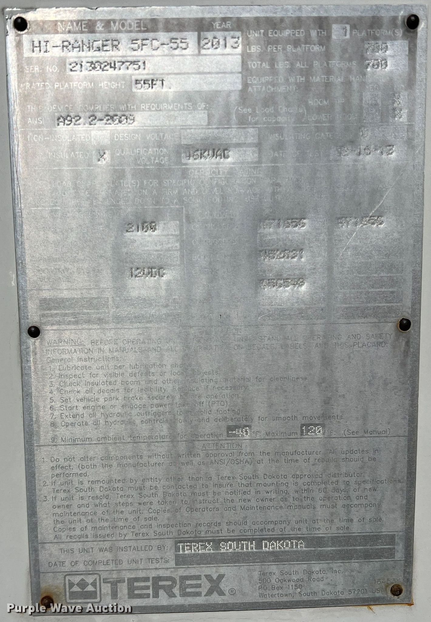 2013 International 4300 bucket truck. Miles: 152,333 on odometer, Hours: 10,337 on meter, VIN: 1HTMMAAN1DH298459. Engine Displacement: 7.6L, Cylinders: 6, Fuel type: Diesel. Transmission Eaton Fuller, Manual, Speed: 6. Chassis Axles: Single, Suspension: Spring, Brakes: Air, PTO. Interior AC, Heat, Cruise control, Brake controller. Features Bed 18' L x 8' W, Boom 2013 Terex Hi-Ranger 5FC-55, Serial: 2130247751, Maximum lift capacity: 700 lbs, Maximum lift height: 55', Boom type: Articulating, Insulated, Man basket, Boom controls Ground, Platform/ basket.. Tires Front: 12R22.5, Rear: 11R22.5. Texas title. Seller is a Texas licensed motor vehicle dealer. The buyer may be required to pay sales tax and/or registration fees to the dealer prior to taking possession. Title will be assigned and distributed by the dealer. Please contact the seller for distribution questions. Pinnacle Vehicle Management. 6000 Riverside Drive. Irving, TX 75039