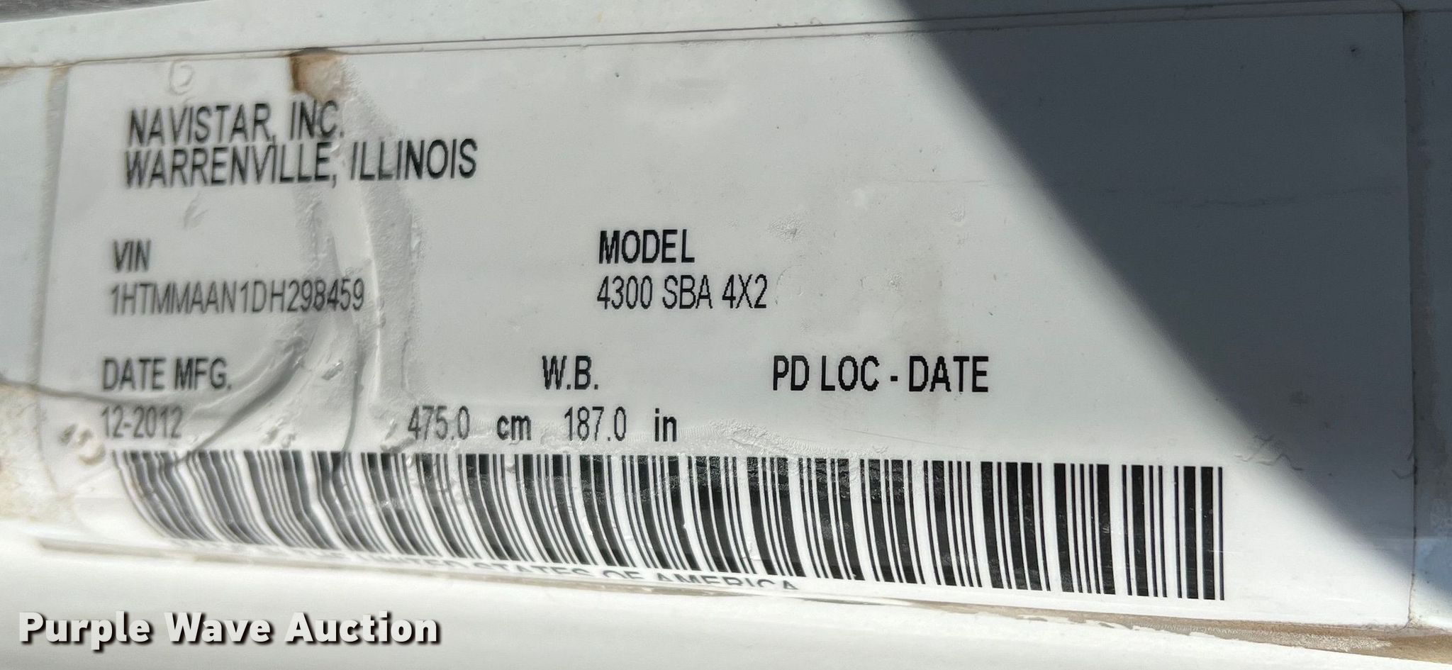Purple Wave is selling a used Bucket Truck in Texas. This item is a 2013 International 4300 bucket truck with the following: Miles: 152,333 on odometer, Hours: 10,337 on meter, VIN: 1HTMMAAN1DH298459