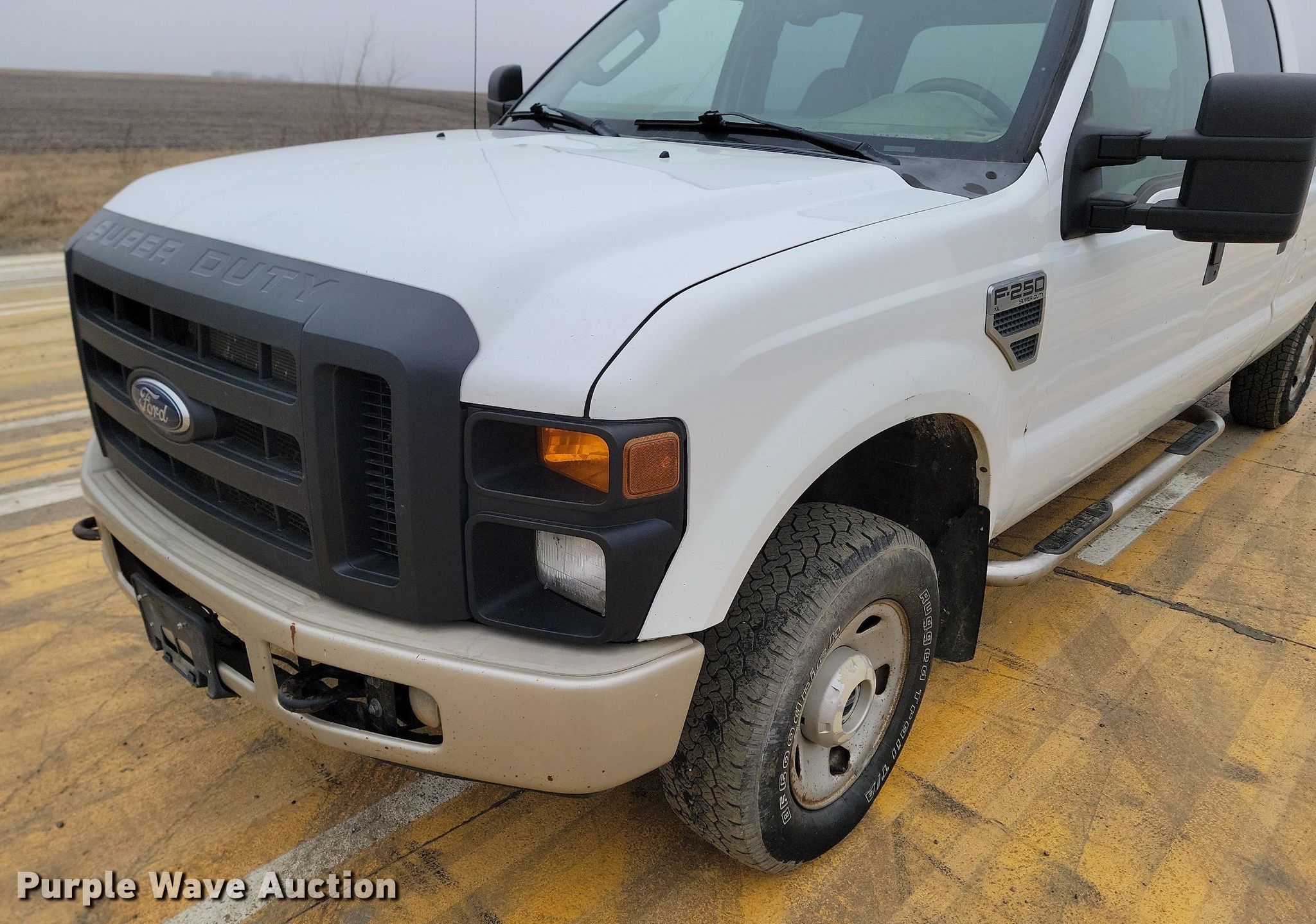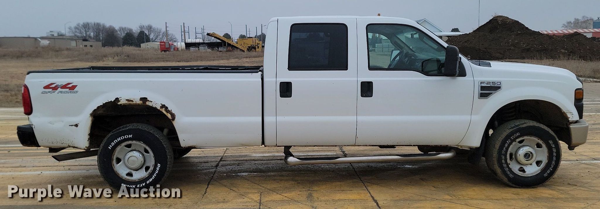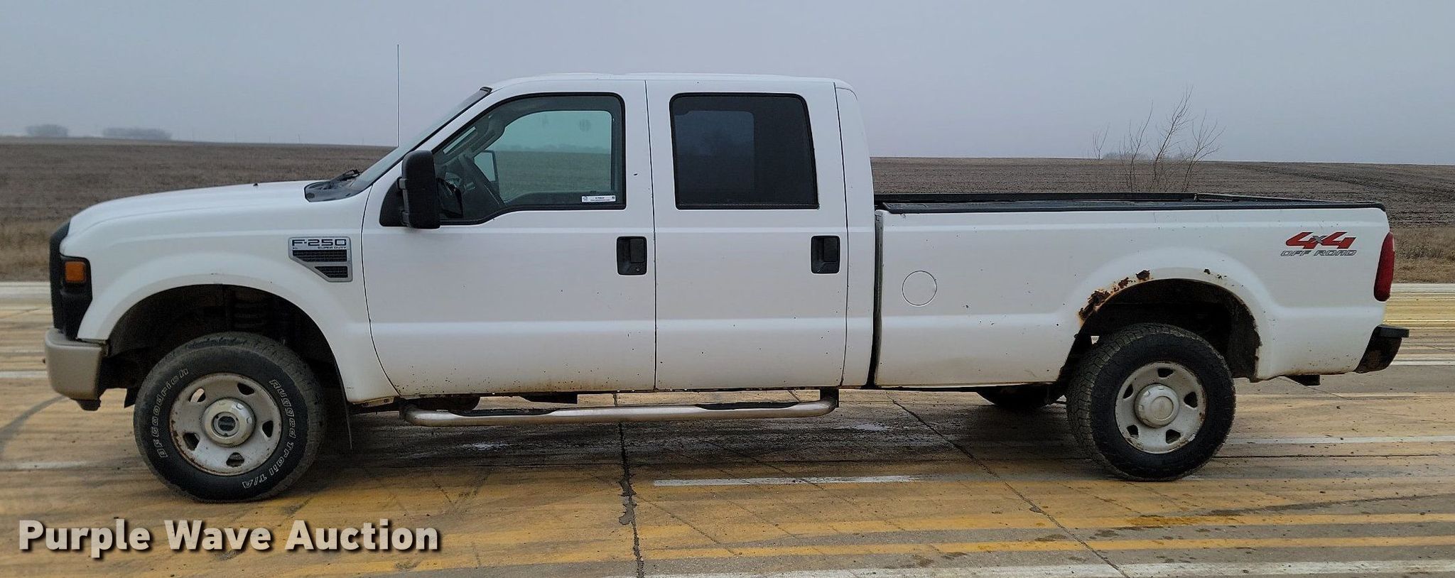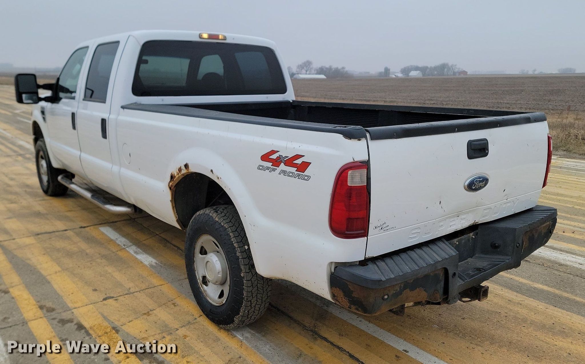 2008 Ford F250 Super Duty XL Crew Cab pickup truck. Miles: 234,353 on odometer, VIN: 1FTSW21538EB25229. Engine Displacement: 5.4L V8 SOHC, Cylinders: 8, Fuel type: Gas. Transmission Automatic, Four wheel drive. Interior AC, Heat, Cruise control. Tires Size: LT245/75R17. Notes Dash warning indicator: ABS, Windshield chipped or cracked. Iowa title. Title distribution may be delayed up to 14 days from verification of funds. VanderPol Excavating LLC. 808 Iowa 10. Orange City, IA 51041