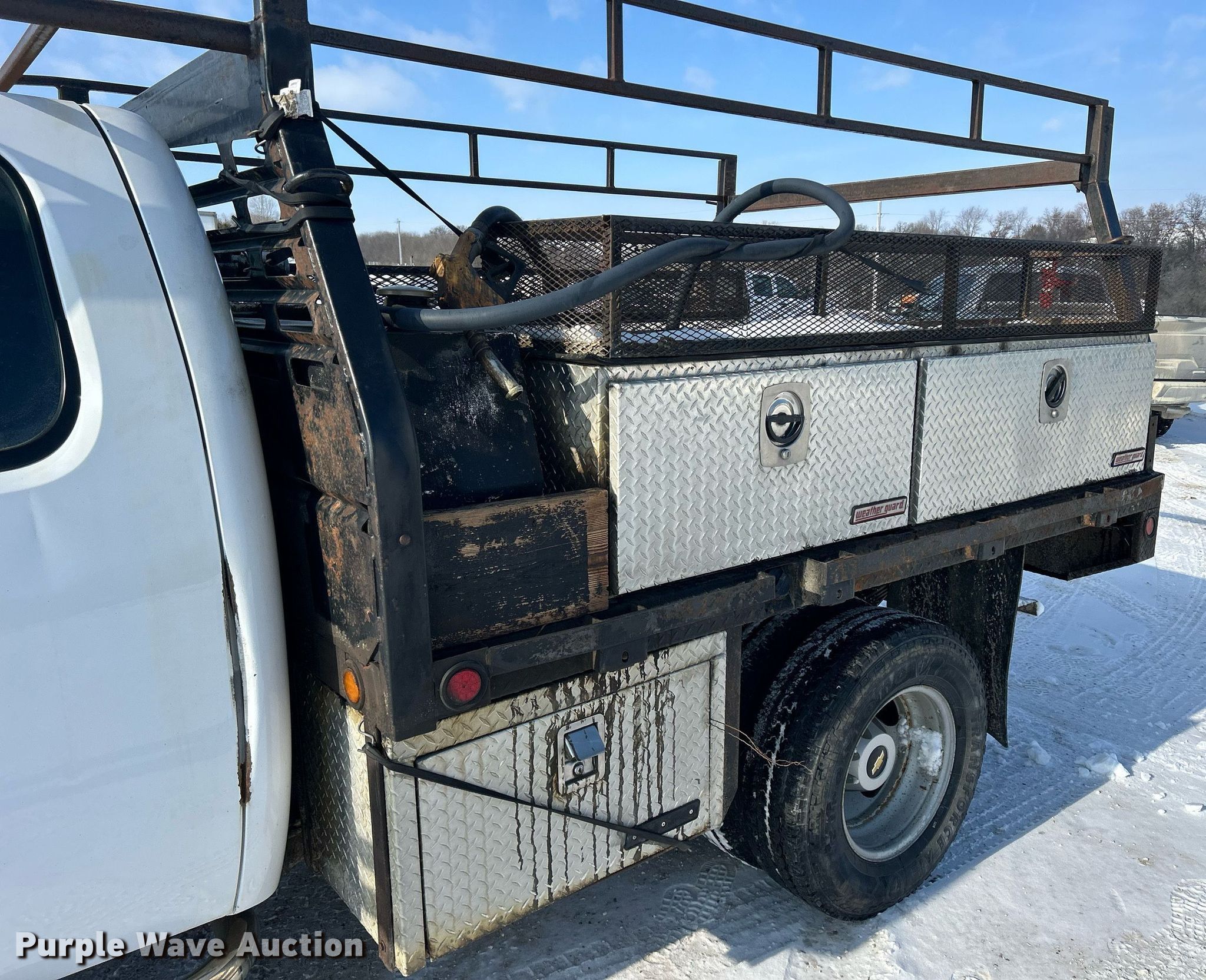 2012 Chevrolet Silverado 3500HD Ext. Cab flatbed pickup truck. Miles: 244,626 on odometer, VIN: 1GB5KZCL9CZ237004, Unit #: 1-95. Engine Displacement: 6.6L V8 OHV, Cylinders: 8, Fuel type: Diesel. Transmission Automatic, Four wheel drive. Interior AC, Heat, Cruise control. Features Flatbed 9' L x 92" W, Ladder rack, Auxiliary fuel tank. Tires Size: 235/80R17. Notes Right side mirror broken, Dash warning indicator: Check engine. Iowa title. Title distribution may be delayed up to 14 days from verification of funds. 2201 State Highway 9. Decorah, IA 52101