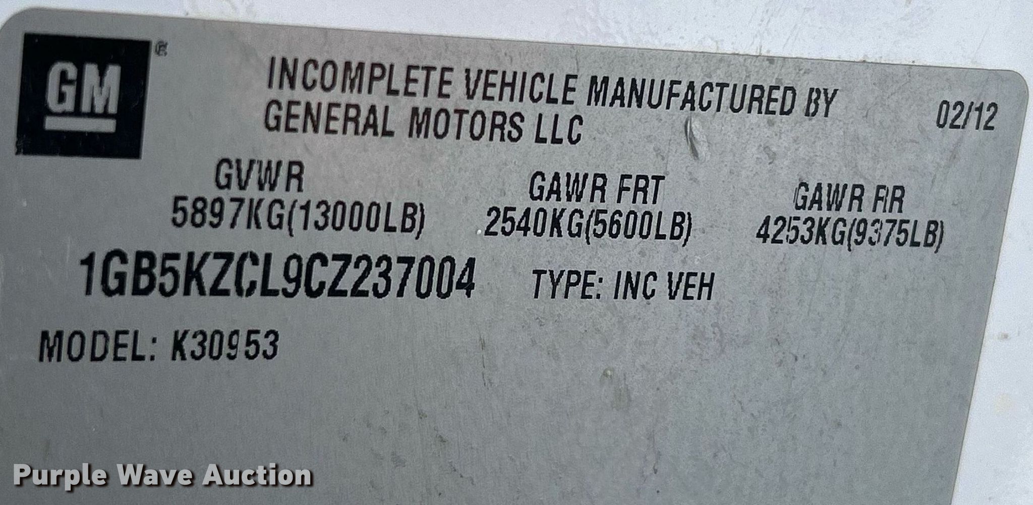 - VIN: 1GB5KZCL9CZ237004