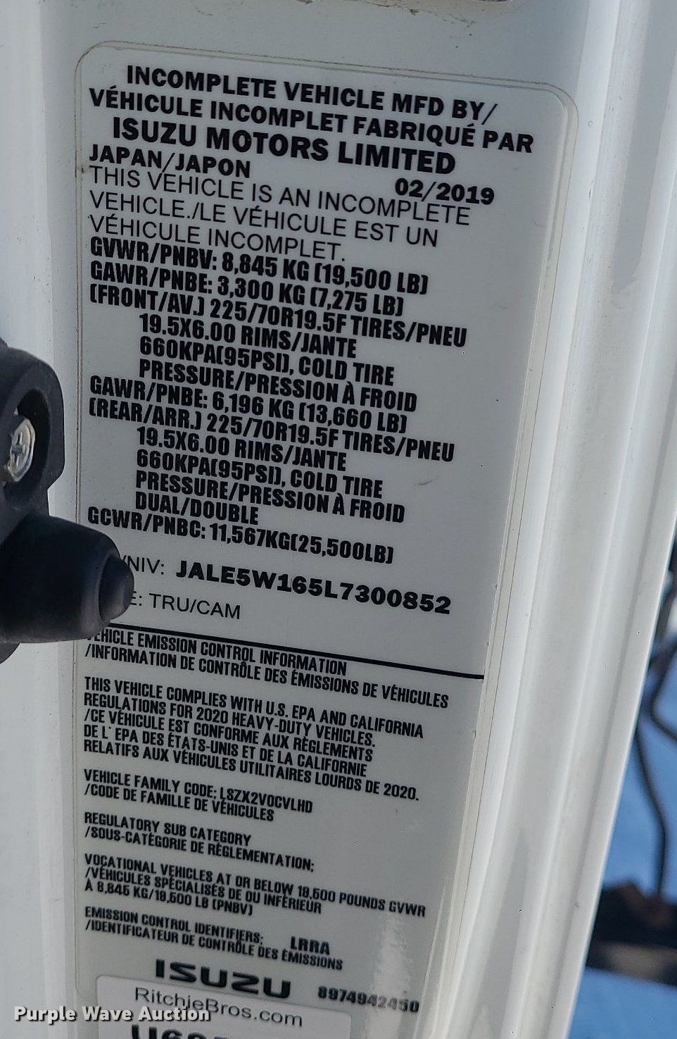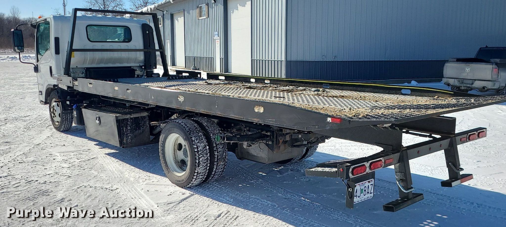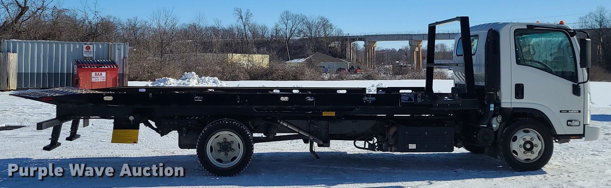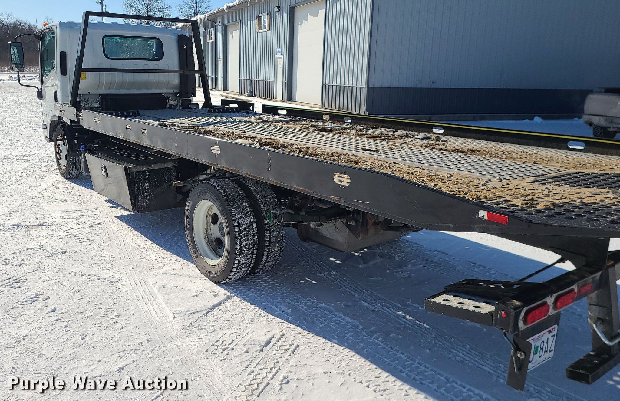 2020 Isuzu NPR rollback truck. Miles: 110,297 on odometer, VIN: JALE5W165L7300852. Engine Isuzu 4HK1-TC, Displacement: 5.2L, Cylinders: 4, Fuel type: Diesel. Transmission Automatic. Chassis Axles: Single, Suspension: Spring, Brakes: Hydraulic, PTO, GVWR: 19,500 lbs. Interior AC, Heat, Power windows, Power locks, Cruise control. Features Rollback bed Cottrell 10k Single Car-1, 21' L x 94.5" W. Tires Size: 225/70R19.5. Missouri title. Title distribution may be delayed up to 14 days from verification of funds. Liberty, MO 64068