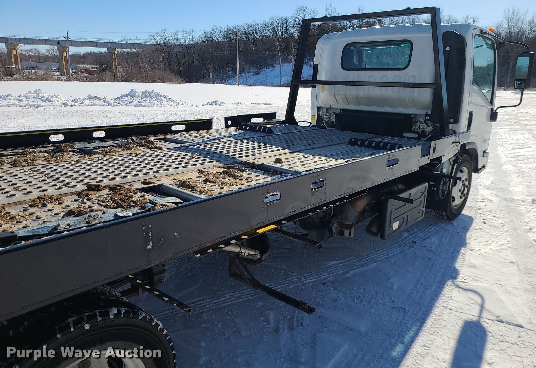This 2020 Isuzu NPR rollback truck will sell to the highest bidder regardless of price.