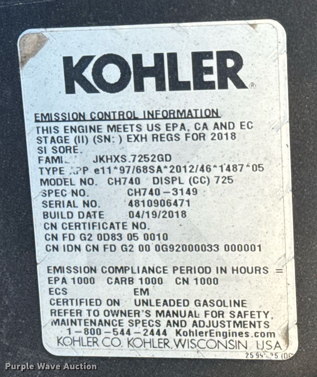 Ventrac 4500Z municipal tractor with vacuum. Hours: 122 on meter, Serial: 4500Z-AJ03153, Unit #: PX1C. Engine Kubota WG972-GL-ET, Displacement: 962 cc, Cylinders: 3, Fuel type: Gas, HP: 32. Transmission Hydrostatic. Features Tuthill 5009-A6L-2CV1-1 vacuum Serial: 3666621811, CFM: 2,300, Kohler Command Pro engine Displacement: 725 cc, Cylinders: 2, Fuel type: Gas, HP: 25, Broom Width: 72". Tires Size: AT22x12-8. Andale Construction. Harper, KS 67058