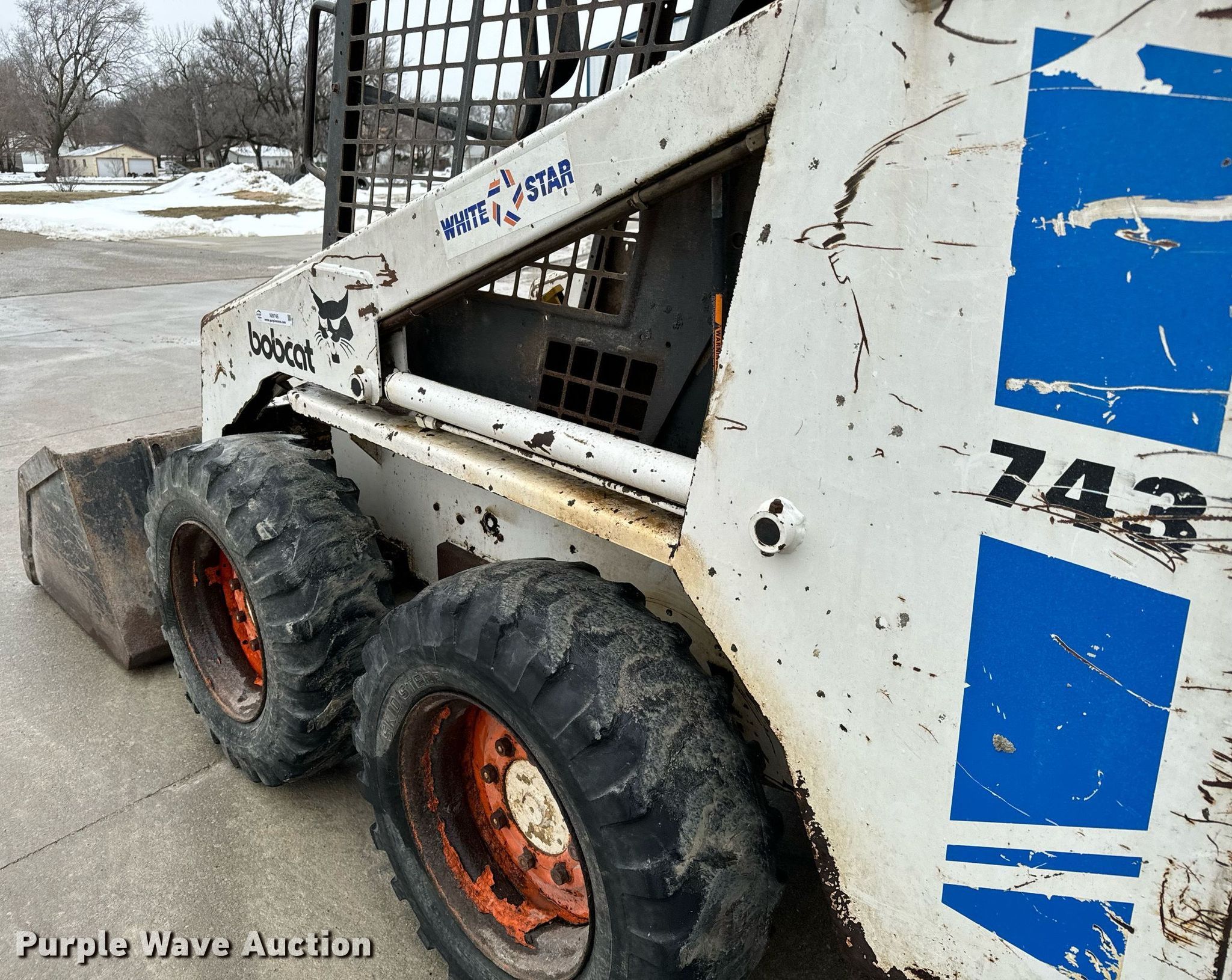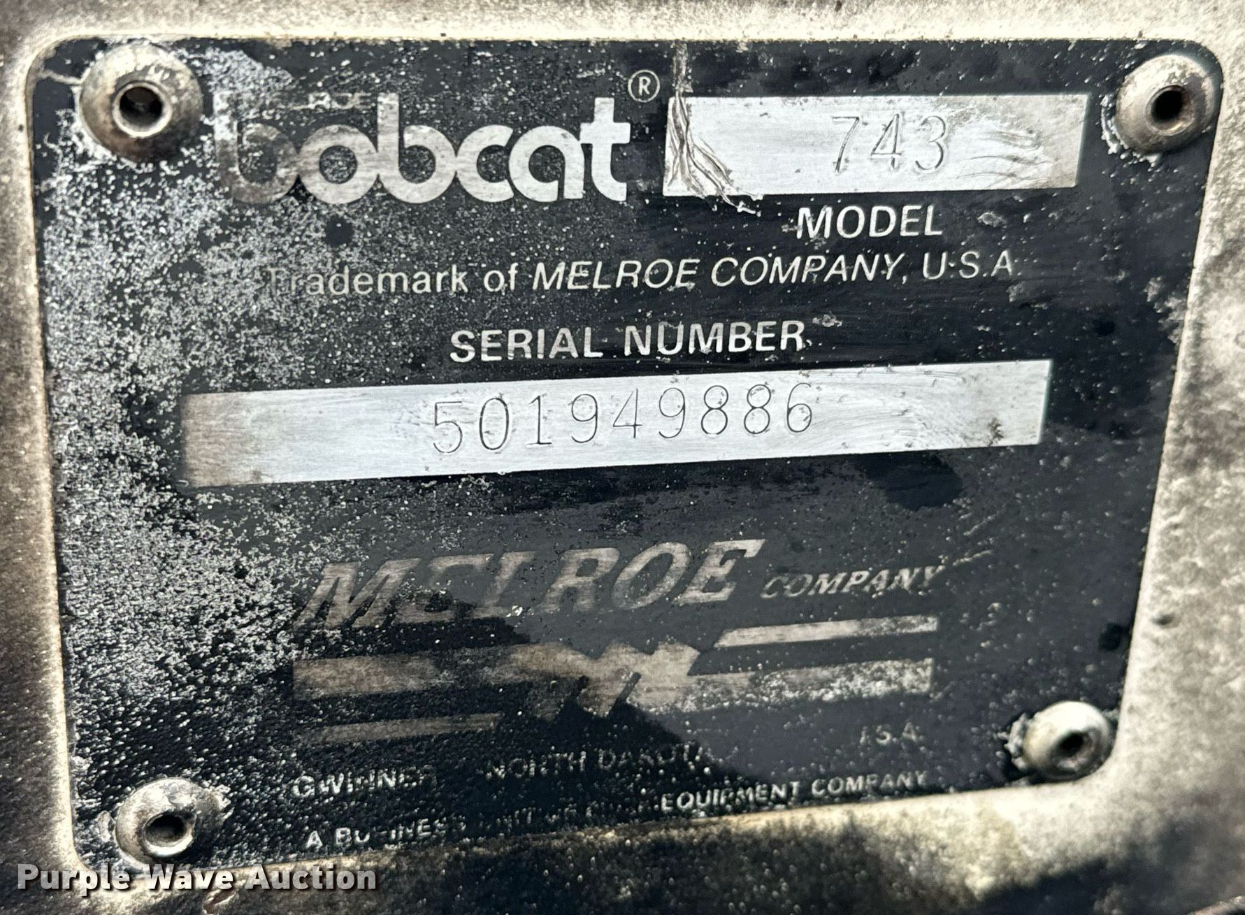 Purple Wave is selling a used Skid Steer Loader in Kansas. This item is a 1989 Bobcat 743 skid steer loader with the following: Hours: 1,471 on meter, Hours: Unknown, Serial: 501949886