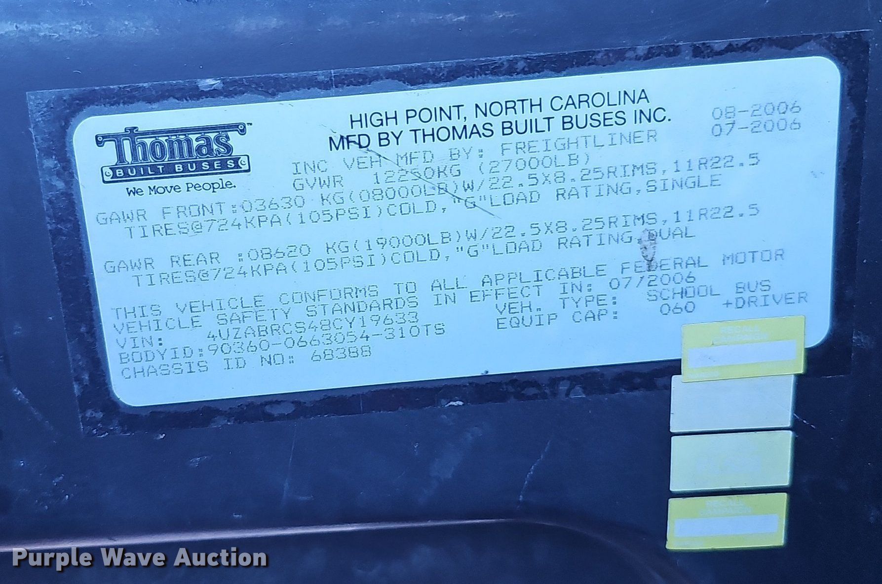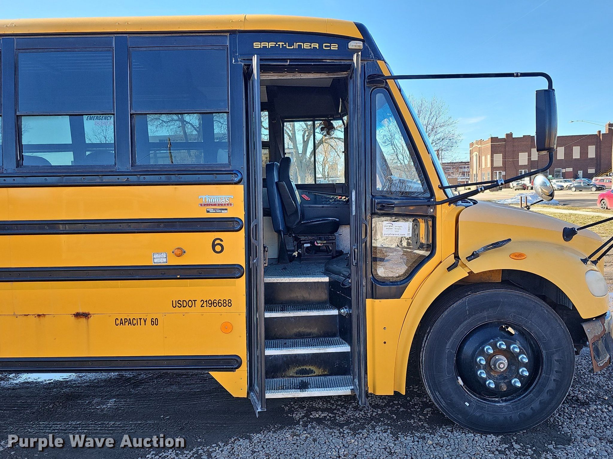 Purple Wave is selling a used Bus in Nebraska. This item is a 2008 Thomas Built Saf-T-Liner C2 school bus with the following: Miles: 142,472 on odometer, Hours: 5,035 on meter, VIN: 4UZABRCS48CY19633, Unit #: 6