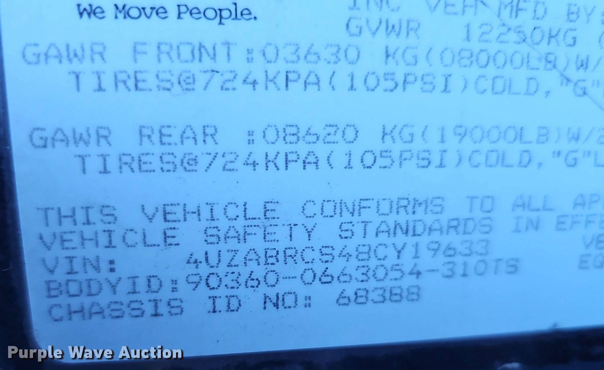 - VIN: 4UZABRCS48CY19633