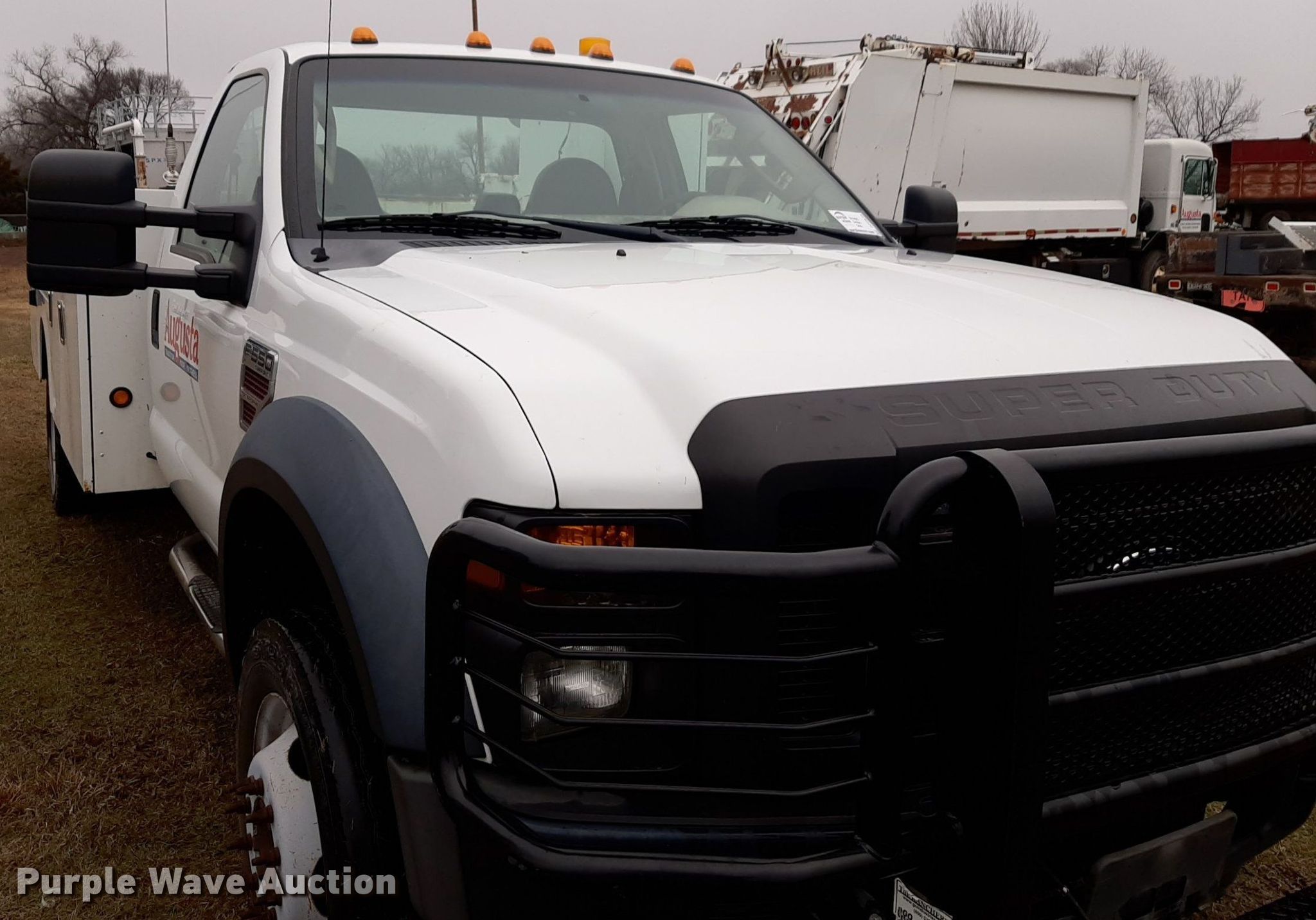 2009 Ford F550 Super Duty XL utility / service truck. Miles: 46,304 on odometer, VIN: 1FDAF56R29EA59309. Engine Displacement: 6.4L V8 OHV, Cylinders: 8, Fuel type: Diesel. Transmission Automatic. Chassis Axles: Single, Suspension: Spring, Brakes: Hydraulic. Interior AC, Heat. Features Bed 12' L x 94" W. Tires Size: 225/70R19.5. Kansas title. Title distribution may be delayed up to 14 days from verification of funds. City of Augusta. 615 12th Ave. Augusta, KS 67010