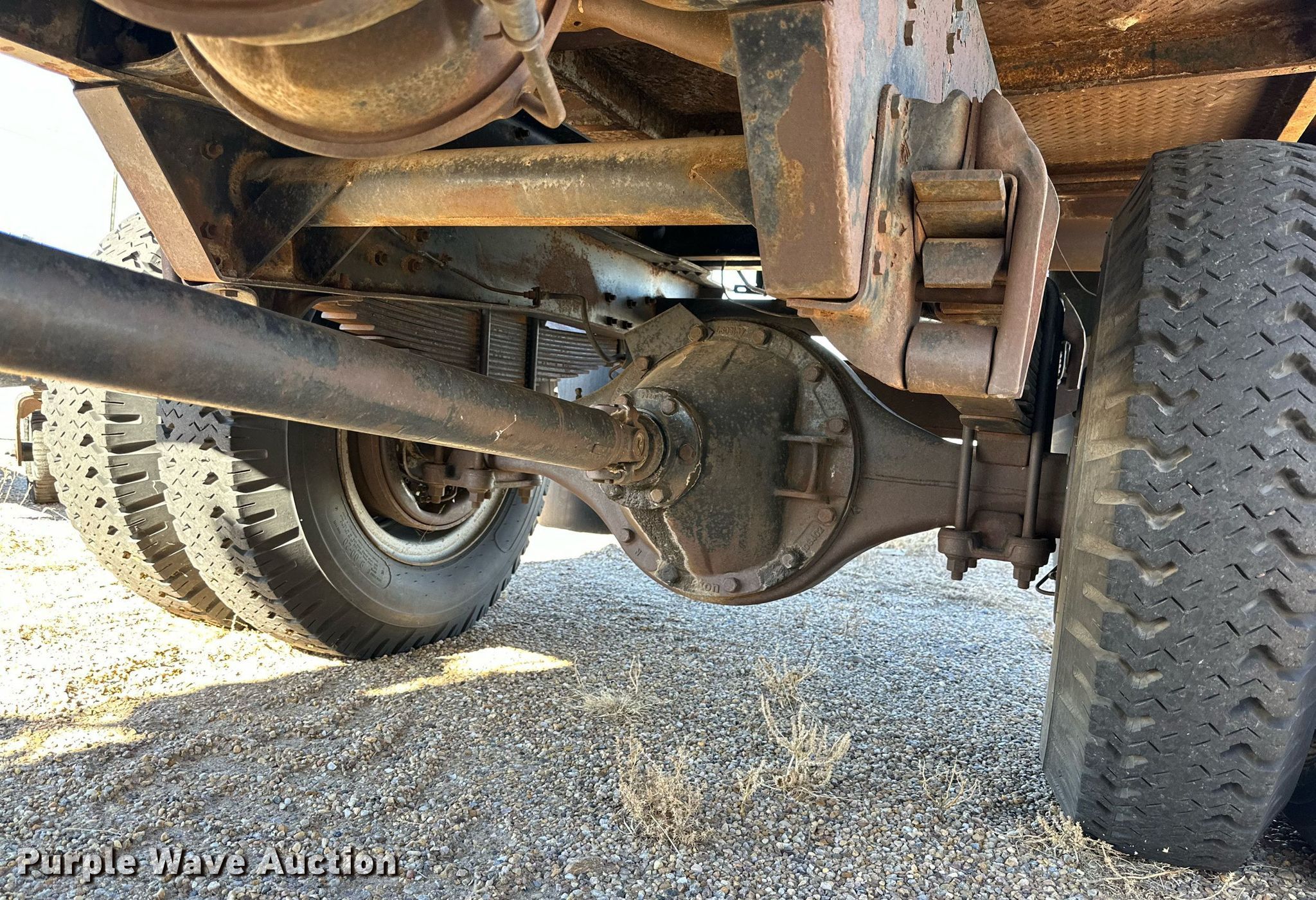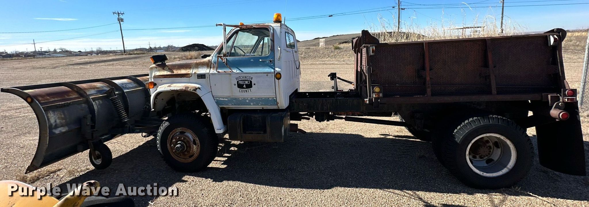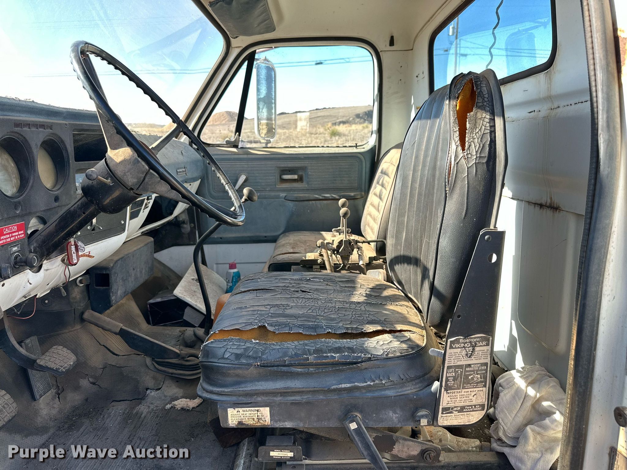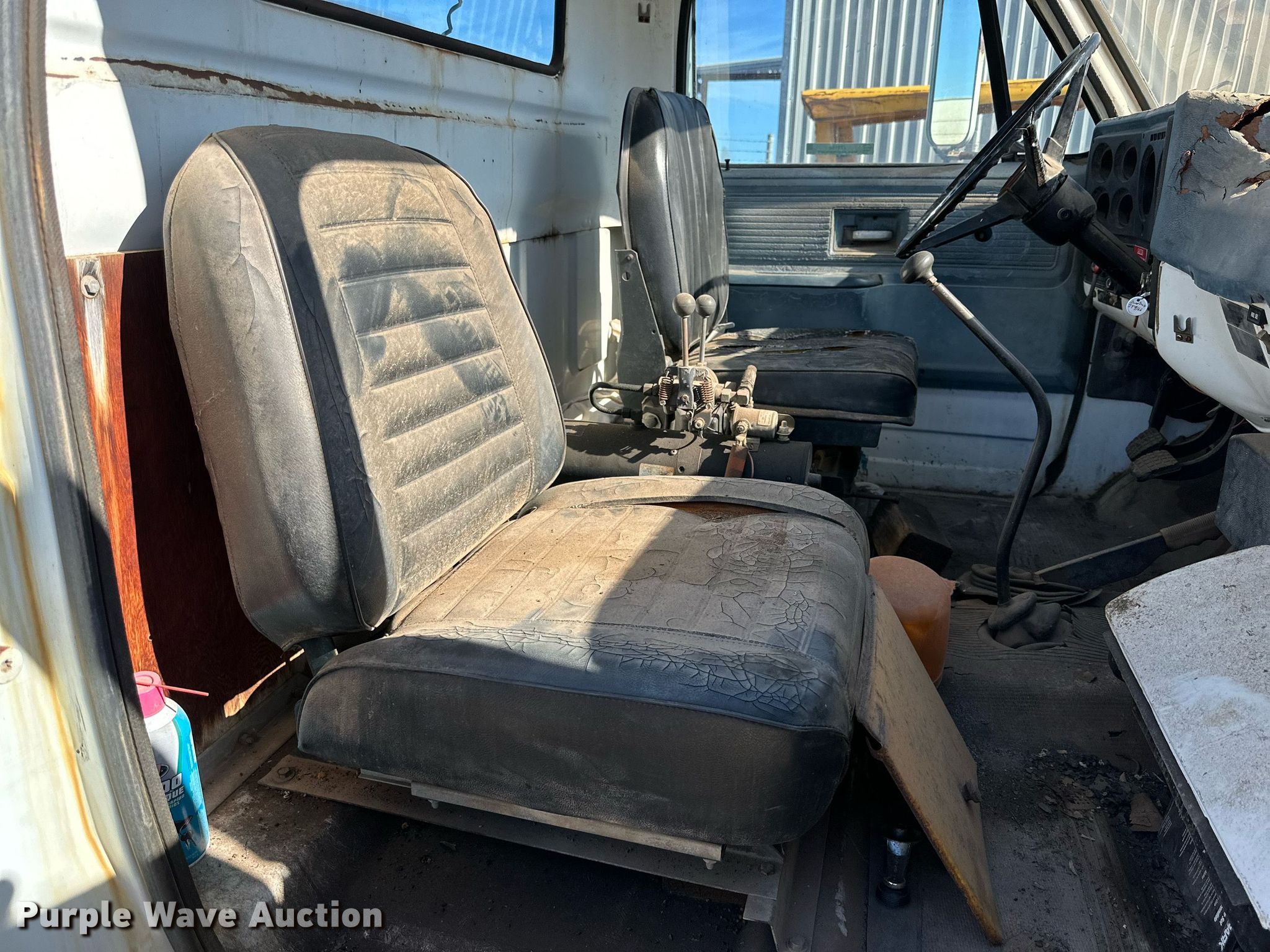 1980 Chevrolet dump truck. Miles: 34,342 on odometer, VIN: C17DBAV106455. Engine Cylinders: 8, Fuel type: Gas. Transmission Manual, Speed: 5. Chassis Axles: Single, Suspension: Spring, Brakes: Hydraulic. Interior AC, Heat. Features Dump bed 8' L x 96" W, Side board height: 34", Bed type: Steel, End gate: Manual, Plow Width: 144". Tires Size: 9.00-20. Notes Hood issues, does not open, Non-operational unit. Texas title. Title distribution may be delayed up to 14 days from verification of funds. 1400 Veta Street. Borger, TX 79007