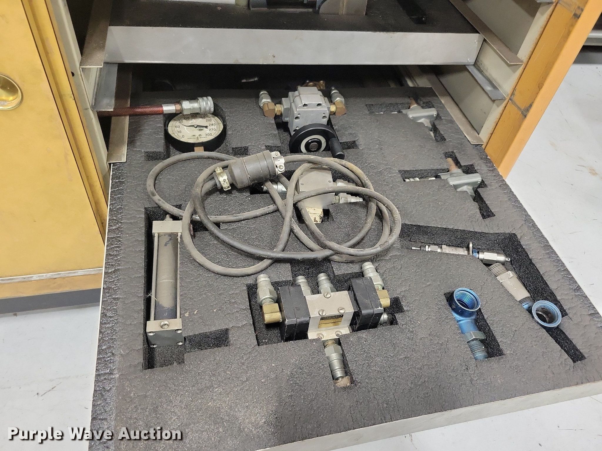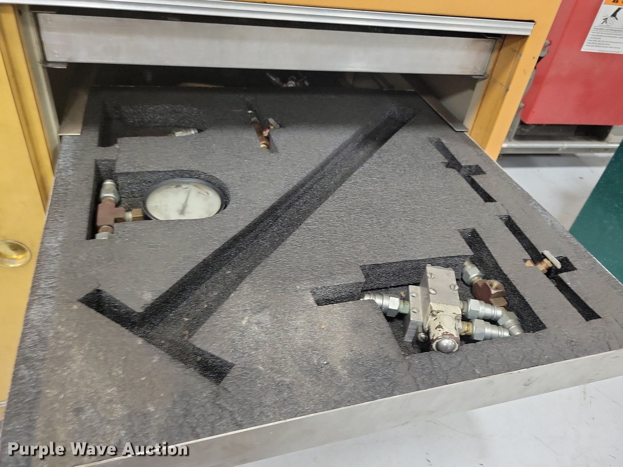 Purple Wave is selling a used Tools in Iowa. This item is a Everco Auto Air Service Center III AC charging station with the following: Manual, Metal hardness tester, Hydraulic pressure tester and more