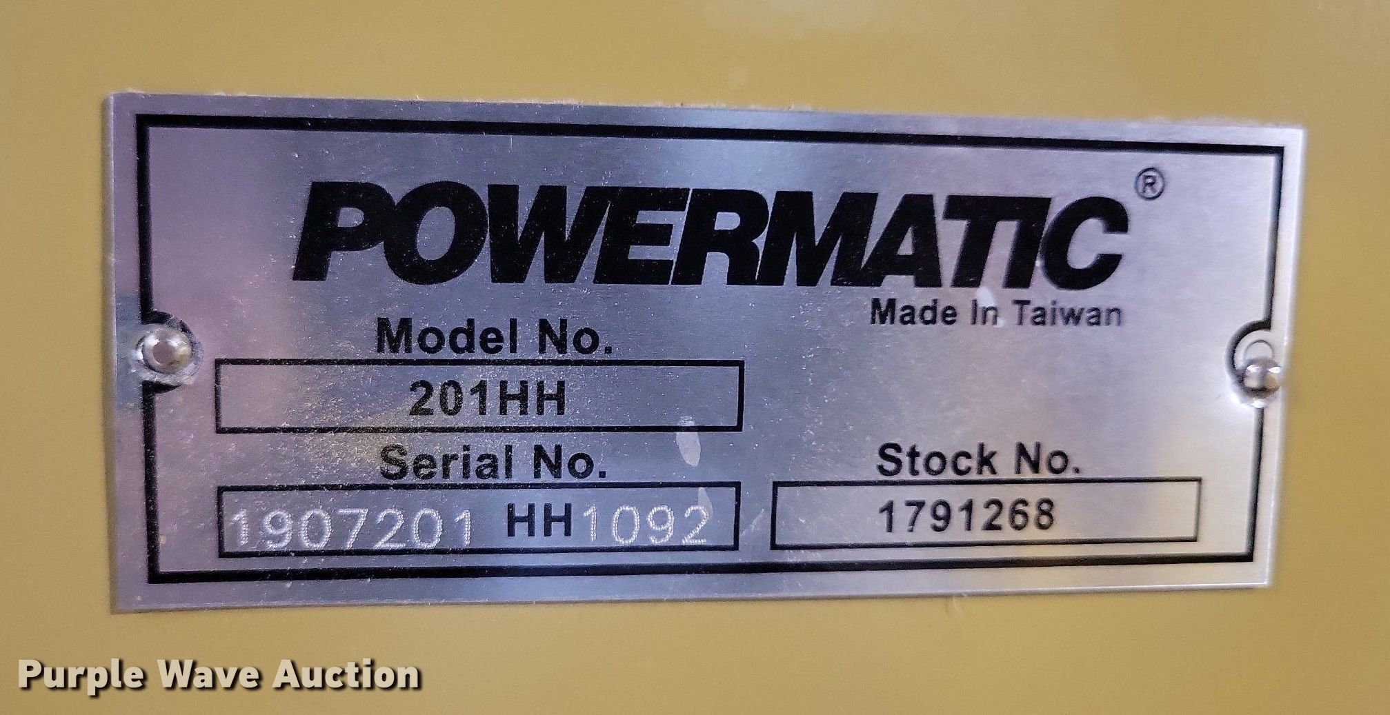 Purple Wave is selling a used Woodworking Equip. in Iowa. This item is a Powermatic 201HH wood planer with the following: Serial: 1907201HH1092, Width: 22", Height adjust
