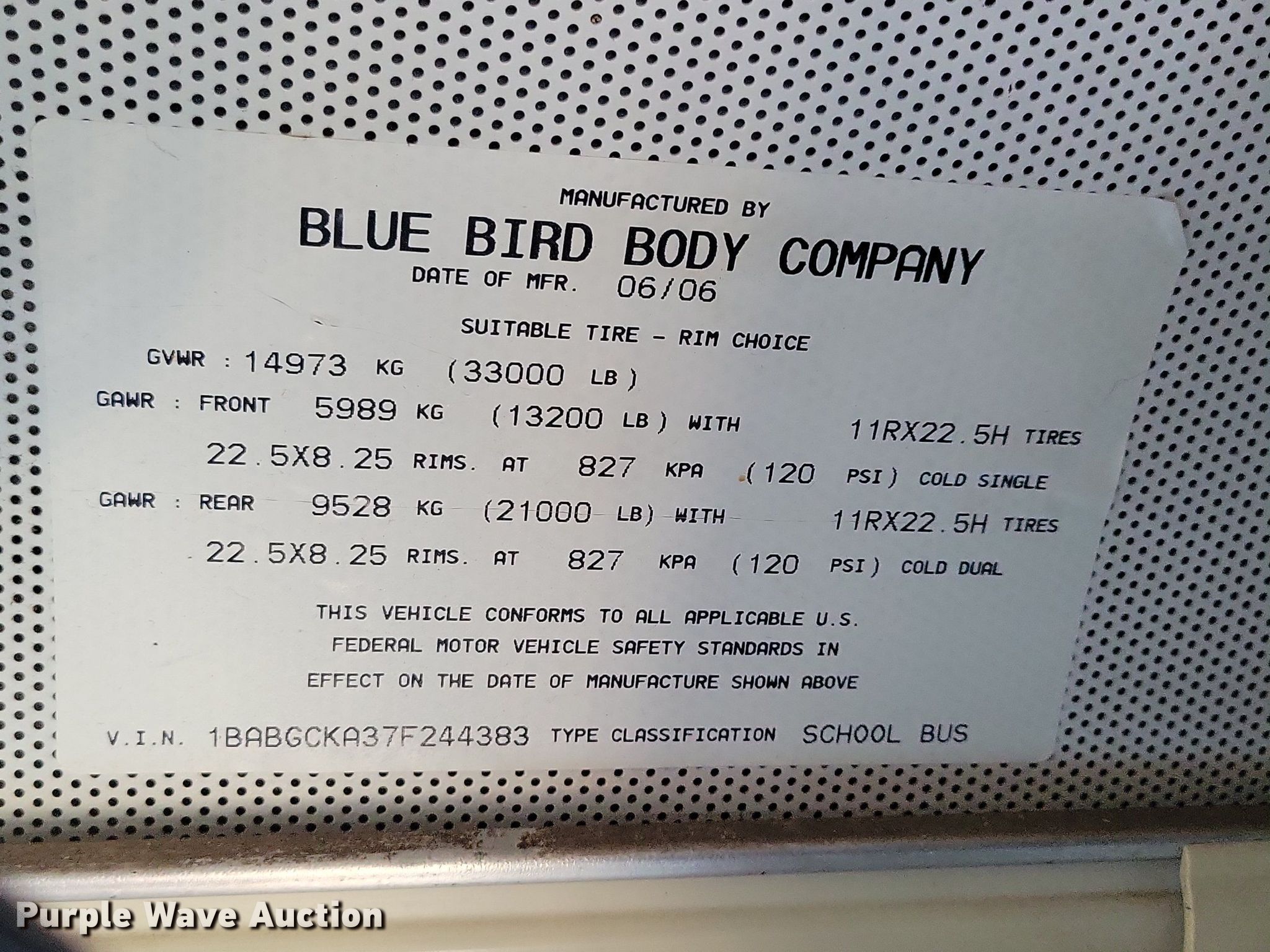 Purple Wave is selling a used Bus in Iowa. This item is a 2007 Blue Bird school bus with the following: Miles: 141,188 on odometer, VIN: 1BABGCKA37F244383, Unit #: 13
