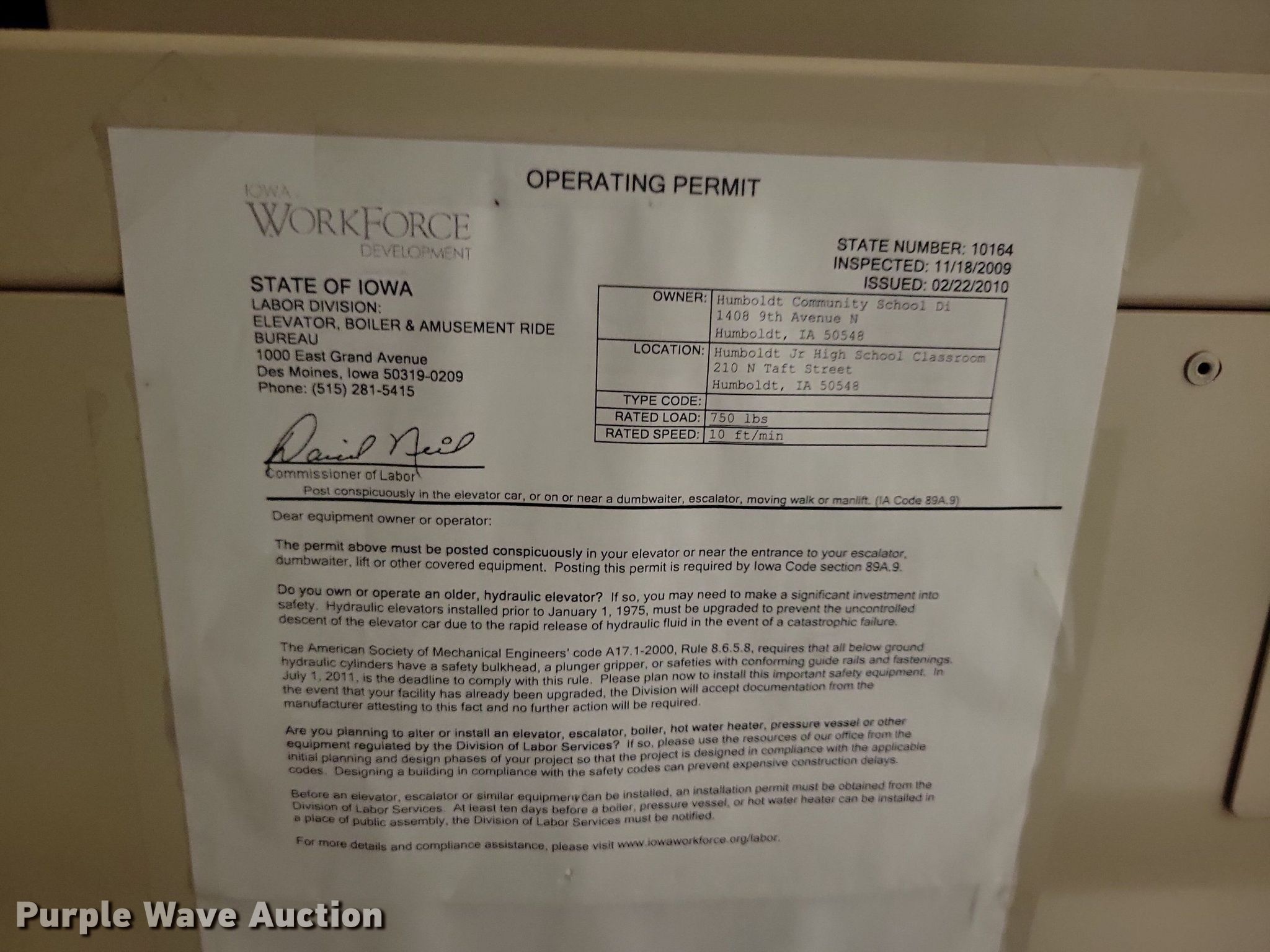 Access handicap elevator has sold in Humboldt, Iowa for $495. Item LC9815 sold on February 20th, 2024.