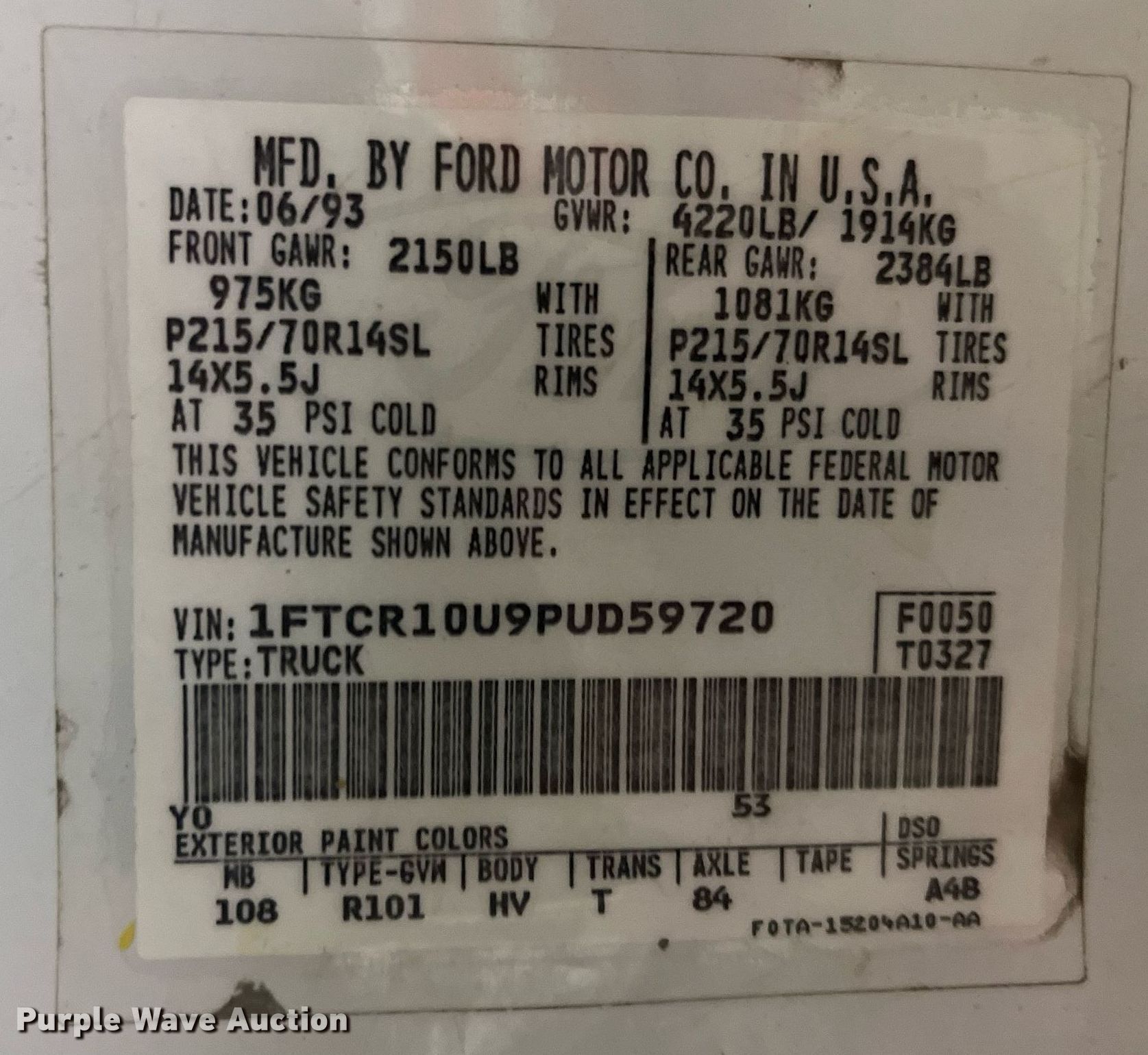 Purple Wave is selling a used Compact Pickup or Van in Iowa. This item is a 1993 Ford Ranger XL pickup truck with the following: Miles: 62,637 on odometer, Hours: 4,801 on meter, VIN: 1FTCR10U9PUD59720