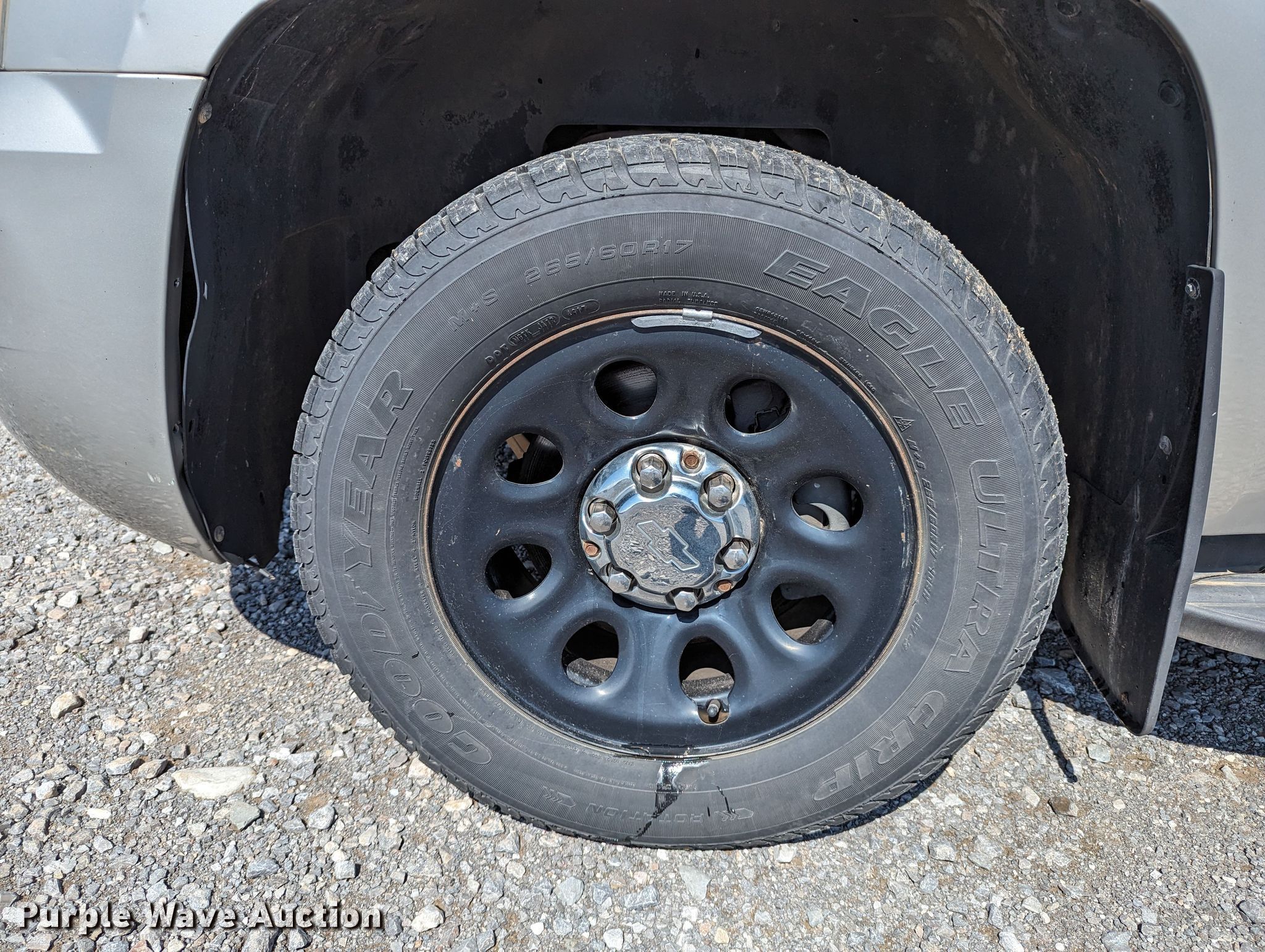 2009 Chevrolet Tahoe Police SUV. Miles: 185,077 on odometer, VIN: 1GNEC03059R188961. Engine Displacement: 5.3L V8 OHV, Cylinders: 8, Fuel type: Gas. Transmission Automatic. Interior AC, Heat, Seat: Power driver, Power passenger, Power windows, Power locks, Cruise control. Tires Size: 265/60R147. Notes Center console missing. Oklahoma title. Title distribution may be delayed up to 30 days from verification of funds. Canadian County Sheriff's office. 3850 Tl Moore Parkway. El Reno, OK 73036
