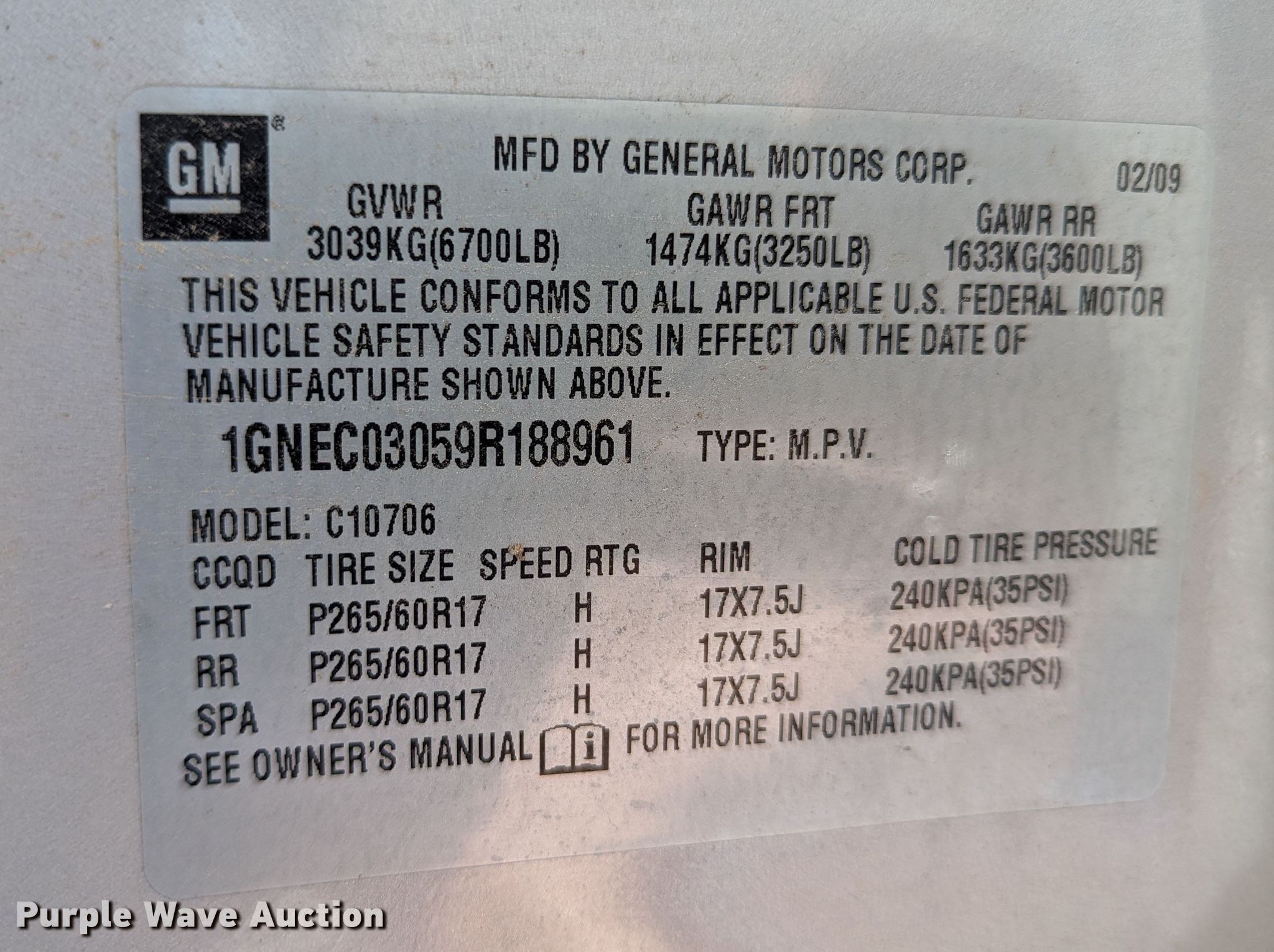 Purple Wave is selling a used Passenger Vehicle in Oklahoma. This item is a 2009 Chevrolet Tahoe Police SUV with the following: Miles: 185,077 on odometer, VIN: 1GNEC03059R188961